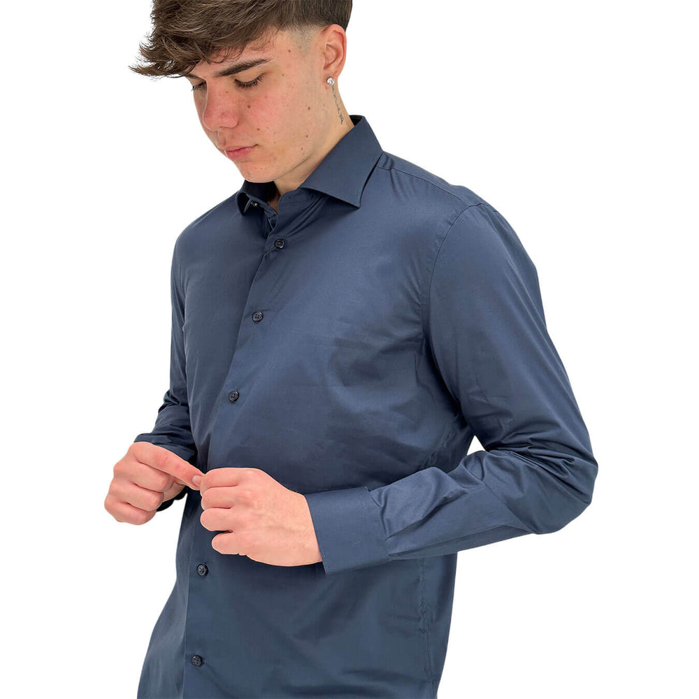 MarKup camicia uomo, realizzata in misto cotone popeline. Il design must have include un colletto classico, che aggiunge un tocco casual. La chiusura con piccoli bottoni conferisce un aspetto raffinato. La manica lunga con bottone sul polso permette di regolare lo stile a tuo piacimento. Un capo versatile, per uno stile formale. Colore blu. Composizione: 97% cotone, 3% elastan. Vestibilità regolare.