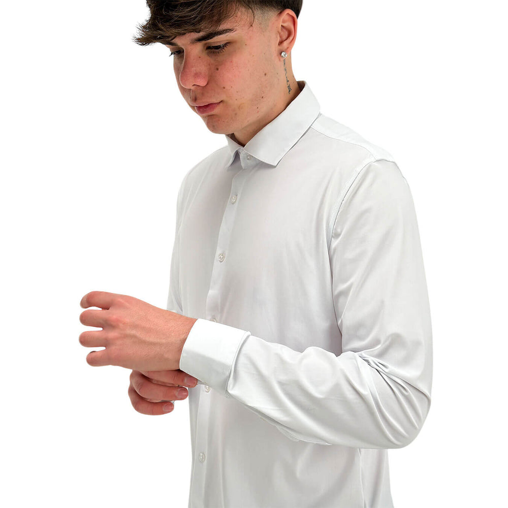 MarKup Camicia Uomo, Basic, Colletto Classico, Tessuto Misto, Bianco