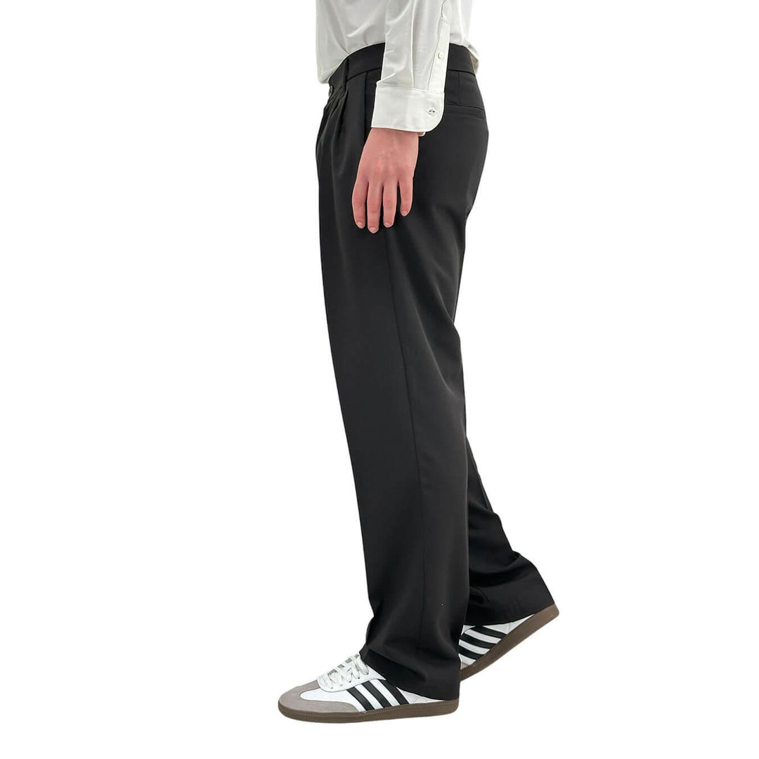 Imperial pantaloni realizzati in tessuto misto cotone, leggermente elasticizzati. Con un taglio cropped fit, offrono una vestibilità moderna e alla moda. Dotati di tasche frontali e dettaglio di tasche a filetto posteriori, uniscono funzionalità e stile. La chiusura frontale con cerniera e bottone garantisce una vestibilità sicura e confortevole. Colore nero. Composizione: 78% poliestere, 18% viscosa, 4% elastan.