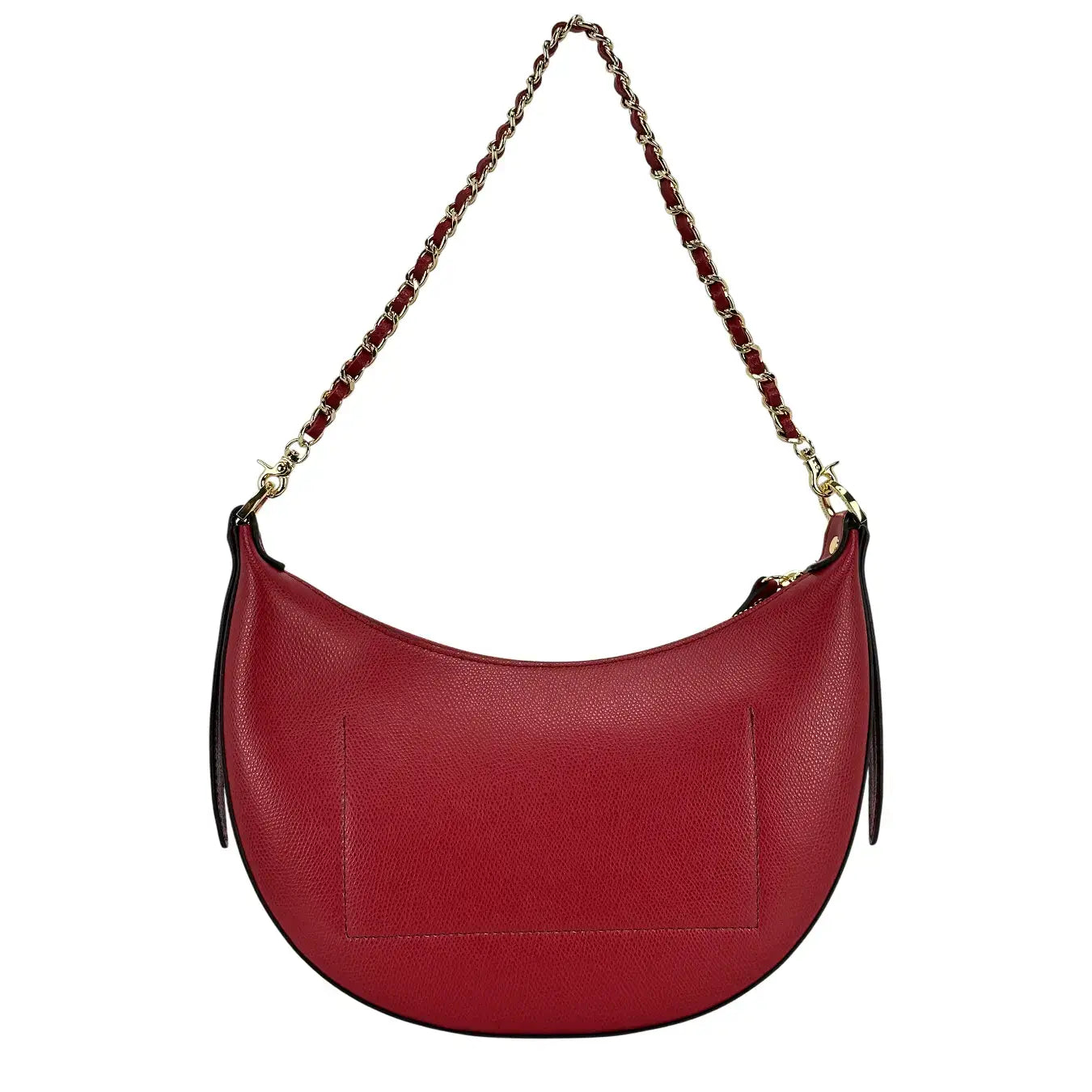 La borsa Eva Small Hobo di Cuoieria Fiorentina conquista con la sua forma a mezzaluna e il vivace colore cherry, perfetto per aggiungere un tocco di allegria e stile a qualsiasi look. Realizzata in pelle di vitello palmellata, resistente e morbida al tatto, è impreziosita da catena dorata rimovibile intrecciata in pelle e tracolla regolabile. Lo scomparto interno con taschino, la chiusura a zip dorata e il logo oro a fuoco ne sottolineano l’eleganza artigianale. Con altezza 20 cm, larghezza 28 cm e profondità 6 cm, è l’accessorio ideale per shopping in città o cene eleganti, garantendo praticità senza rinunciare al design contemporaneo.