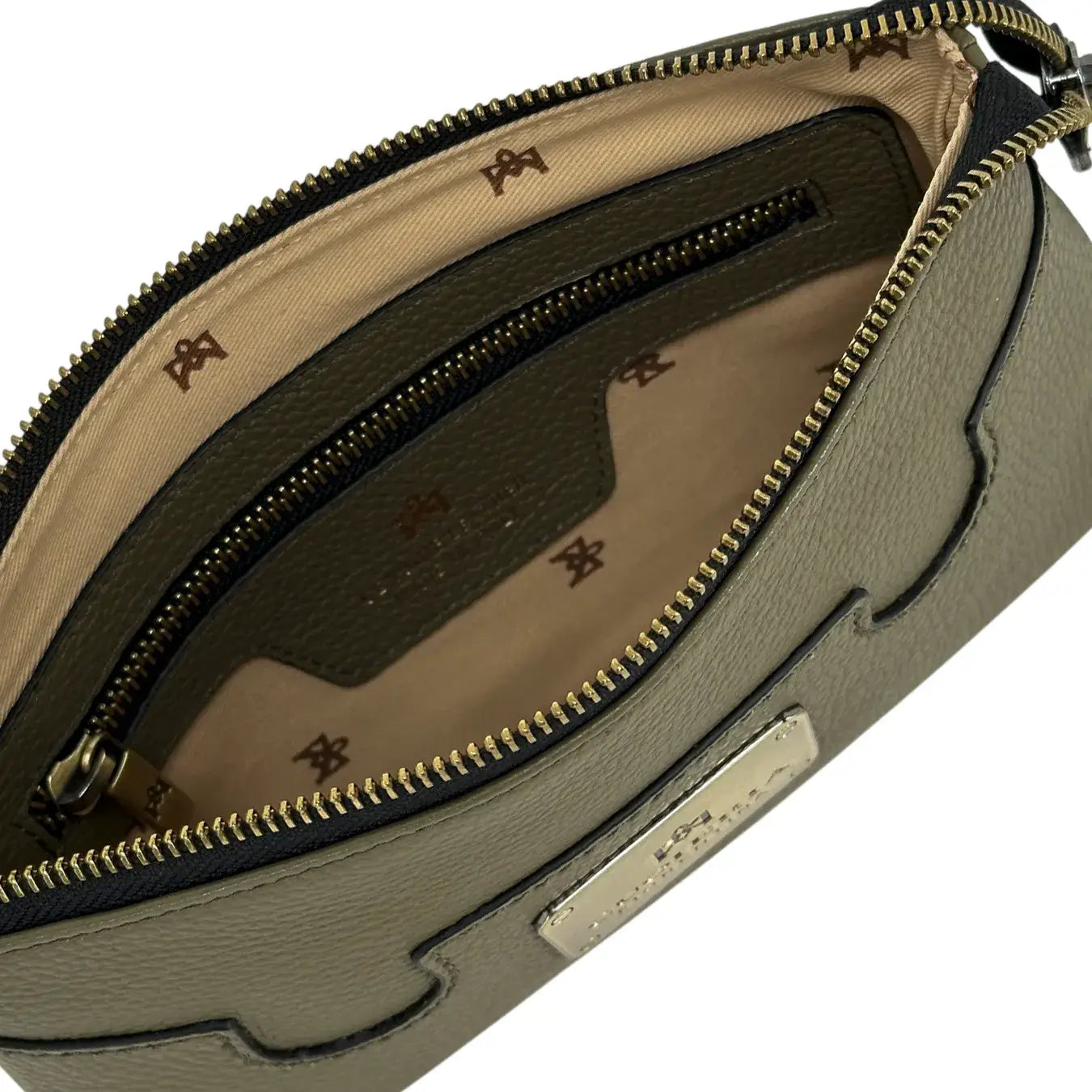 a belt bag Cuoieria Fiorentina Bella Selleria in verde bosco esprime una femminilità moderna e disinvolta, perfetta da indossare in vita o come crossbody per uno stile pratico e sofisticato. Realizzata in morbida pelle di vitello pieno fiore bottalata, con grana uniforme e mano piena e rotonda, unisce eleganza e funzionalità. I dettagli effetto ottone invecchiato e la tracolla bimaterica donano carattere a un design versatile, ideale per look casual chic o urban. Misura 14 x 24 x 3 cm ed è composta al 100% da pelle di vitello pieno fiore.