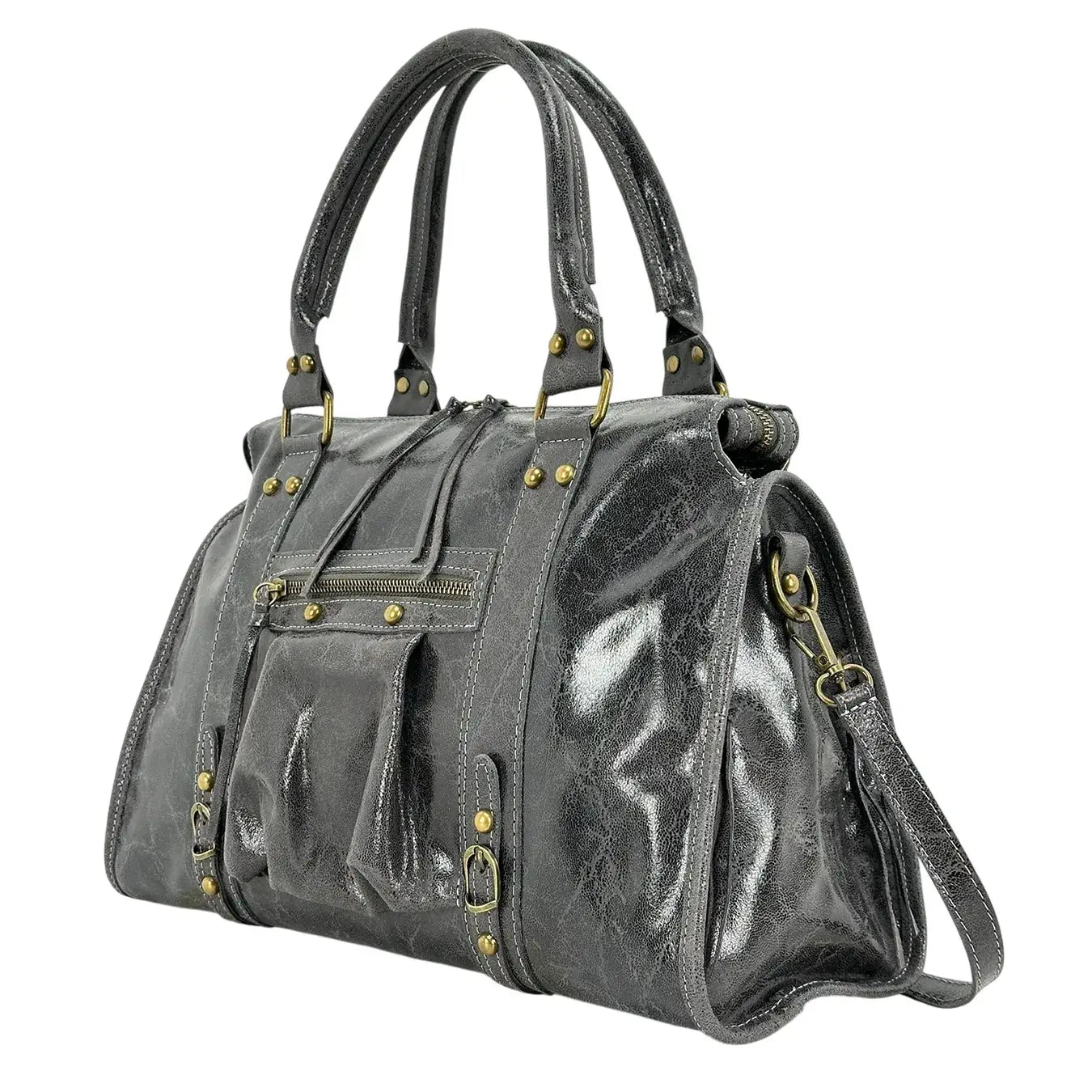 City bag Bassini in vera pelle grigia, di misura grande, progettata per unire stile e funzionalità. La pelle morbida e resistente conferisce un look raffinato e contemporaneo. I due manici a spalla e la tracolla rimovibile con moschettoni assicurano comfort e praticità. La tasca frontale con zip e gli interni foderati con scomparti ben organizzati rendono questa borsa perfetta per l’uso quotidiano. Un accessorio di qualità da aggiungere subito al tuo guardaroba. Dimensioni: cm. 42 x 27 x 15.