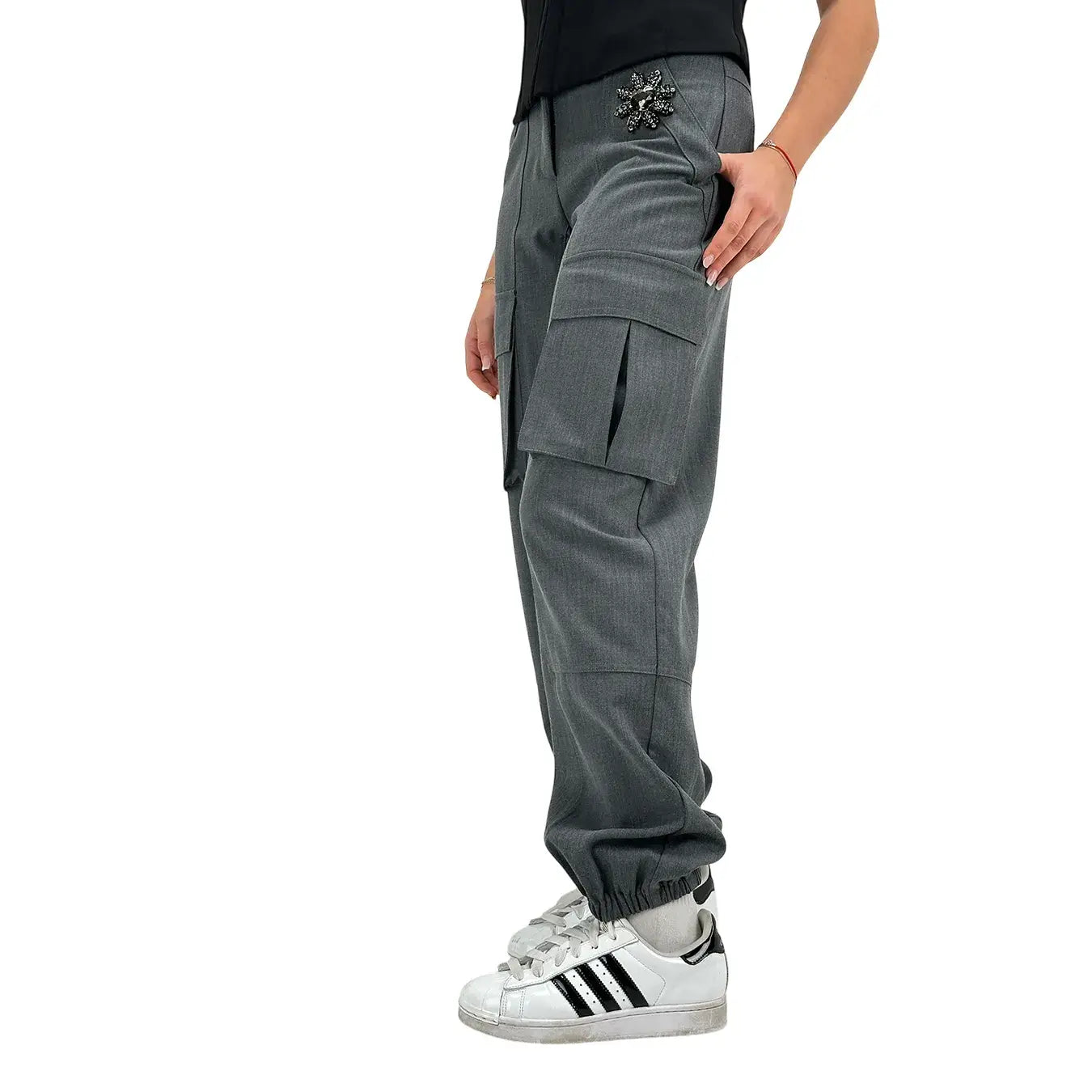 Koralline, Pantaloni Cargo, Donna, Tessuto Misto, Grigio