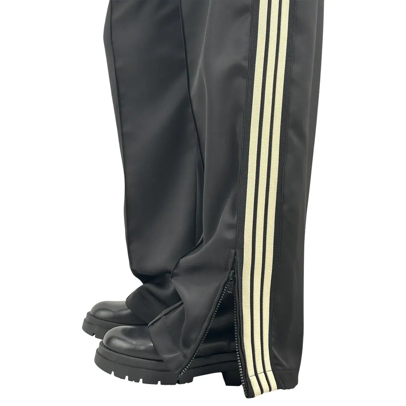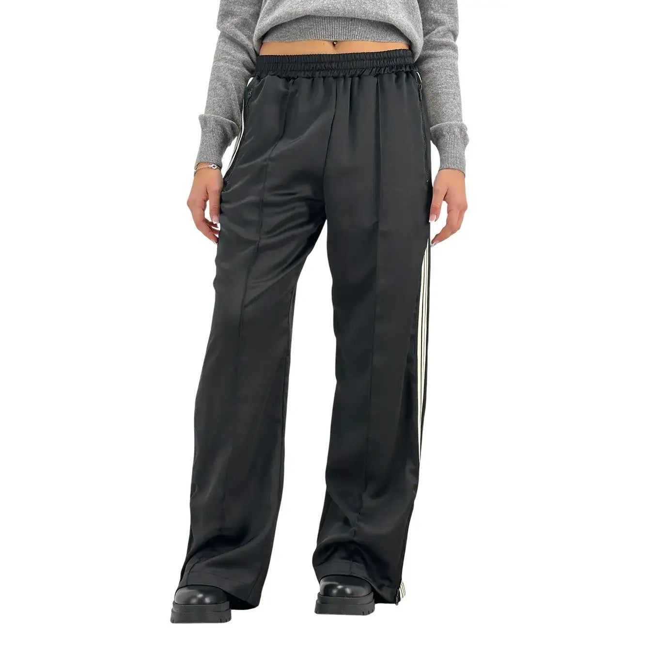 I pantaloni Tensione in nero con bande laterali bianche uniscono design sportivo e stile urbano, con elastico in vita e fondo con zip che garantiscono comfort e praticità. La vestibilità moderna li rende ideali per outfit casual-chic o athleisure, facilmente abbinabili a sneakers e felpe o blazer leggeri per un look contemporaneo. Un capo versatile che unisce tendenza e qualità in ogni dettaglio. Composizione: 100% poliestere.