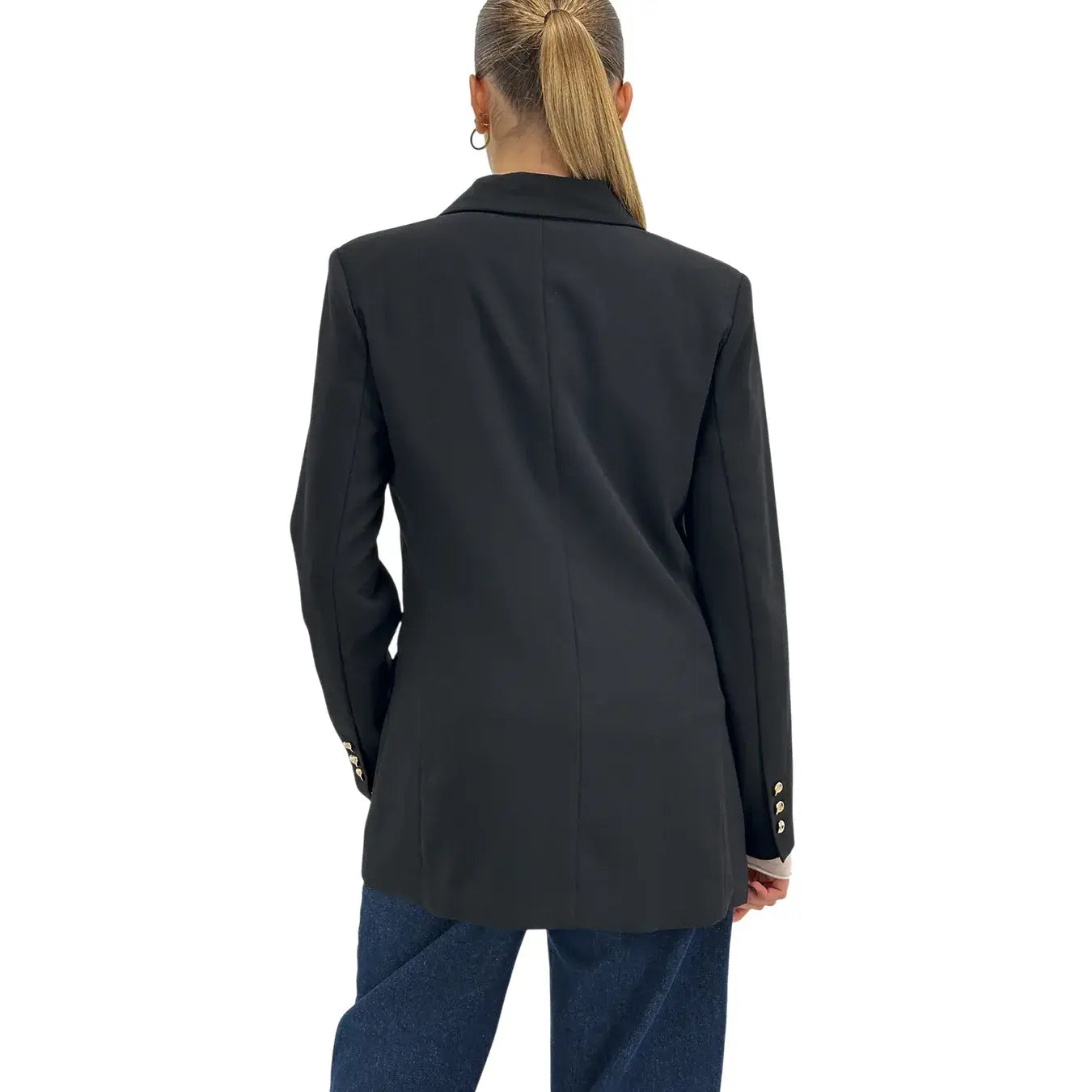 Giacca Koralline nera dal taglio over e costruzione a doppio petto, ideale per aggiungere un tocco moderno e deciso a qualsiasi look. Il design morbido garantisce comfort e libertà di movimento, perfetto su pantaloni eleganti o denim per uno stile contemporaneo e versatile. Un capo di carattere che valorizza ogni outfit con semplicità.