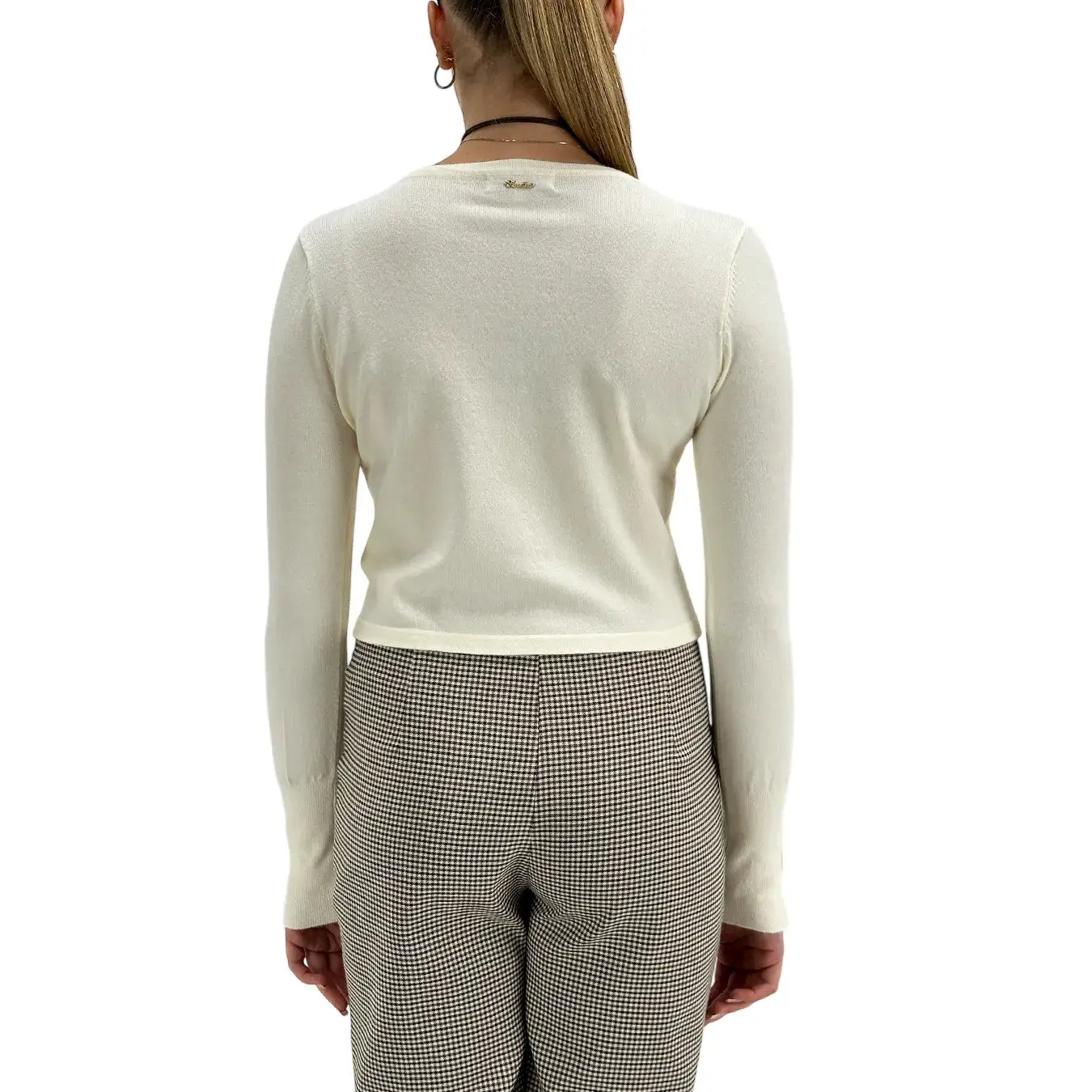 Il cardigan Koralline panna modello crop è un capo versatile e contemporaneo, dal taglio corto che valorizza la silhouette con eleganza. Il tessuto morbido e leggermente elastico garantisce comfort e libertà di movimento, rendendolo perfetto da indossare sopra top o bluse per look casual chic o outfit più raffinati. Un capo essenziale, moderno e di tendenza.