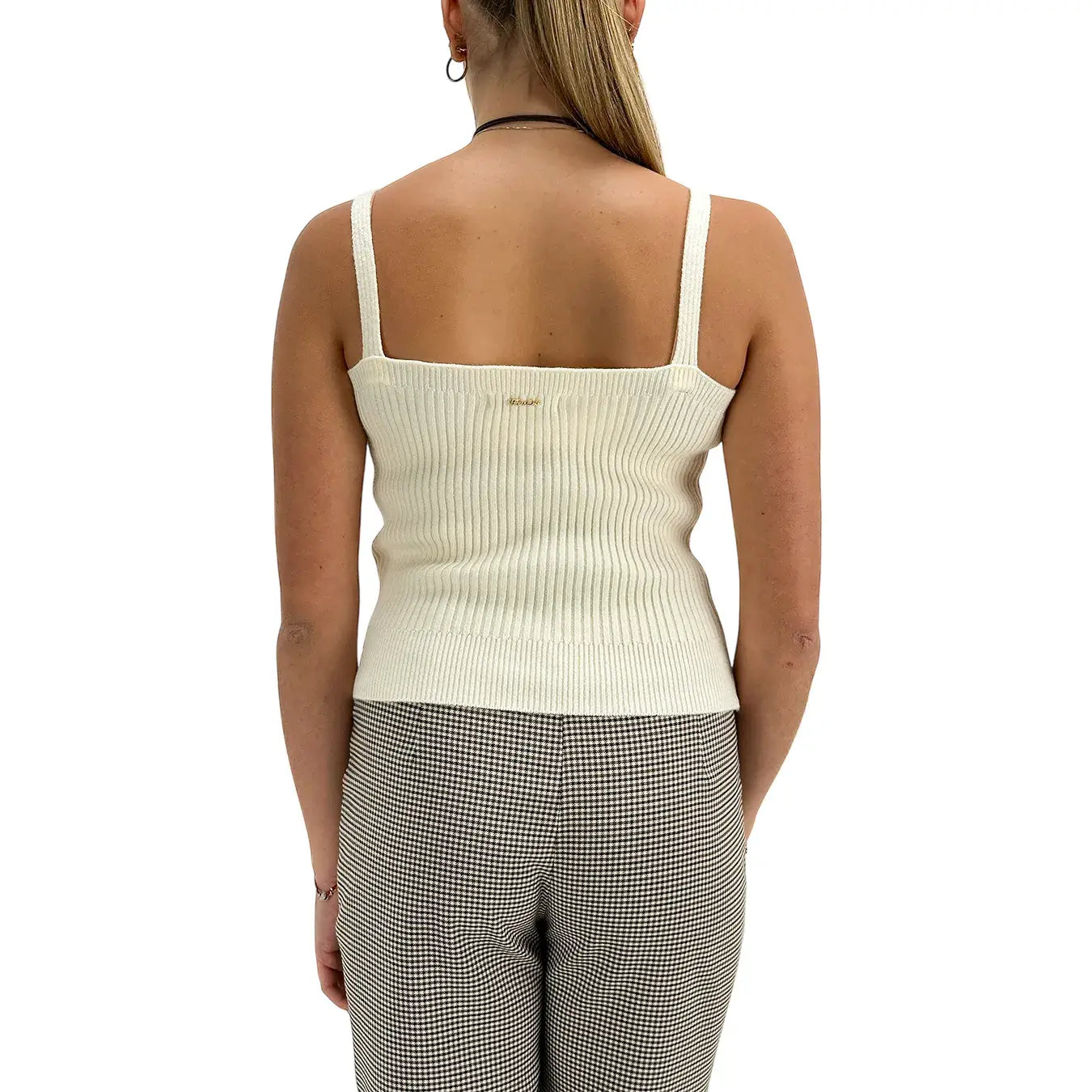 La canotta Koralline panna in maglia è un capo versatile e raffinato, realizzato in tessuto morbido ed elastico che avvolge la silhouette con comfort e naturalezza. Ideale da indossare da sola in look estivi o come base per layering con cardigan e blazer, dona un tocco luminoso e femminile a ogni outfit, mantenendo stile e praticità.