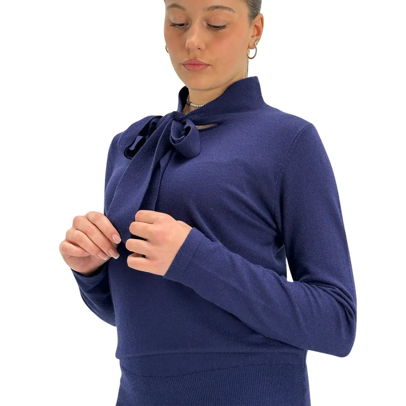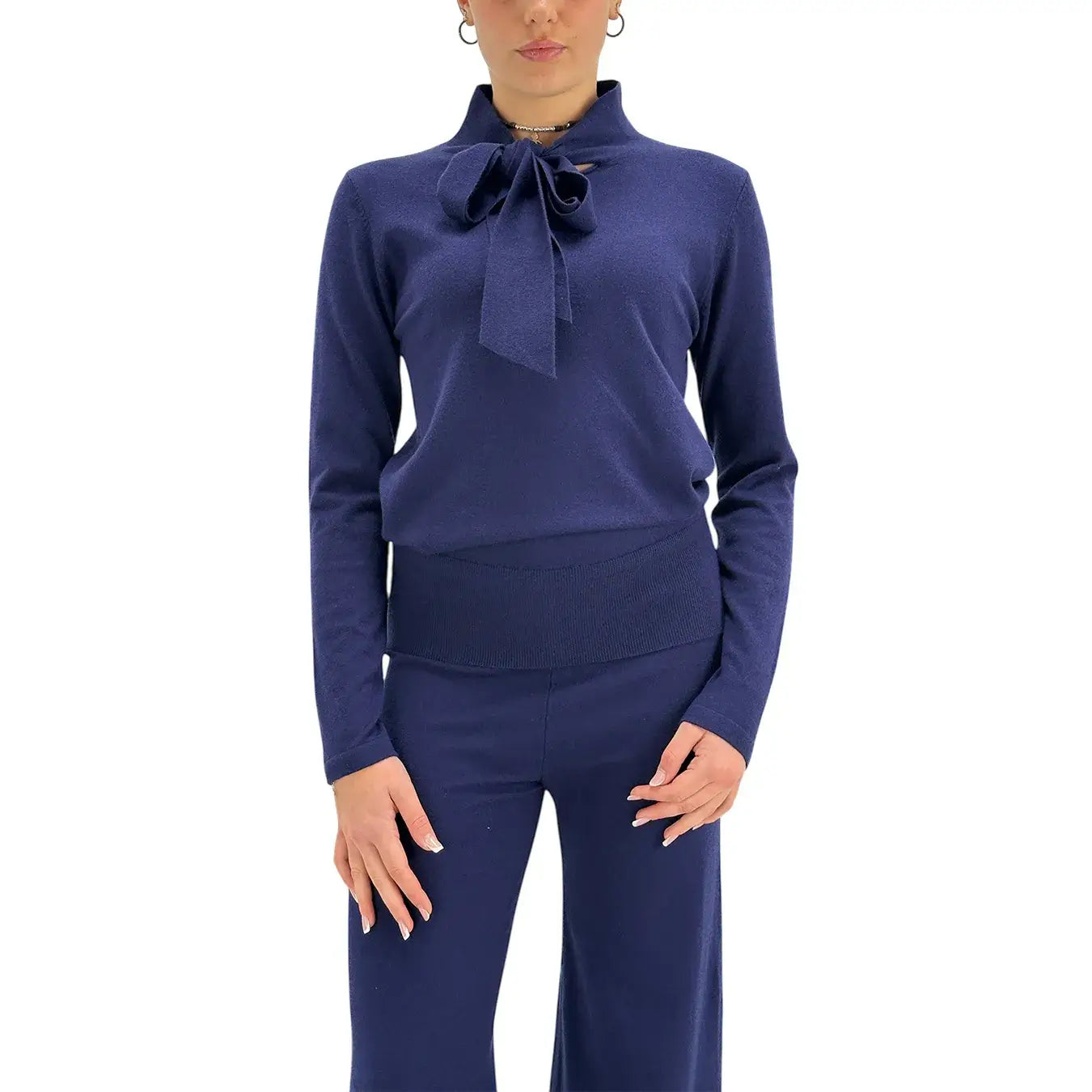 Koralline, Maglia con Fiocco, Donna, Tessuto Misto, Blu
