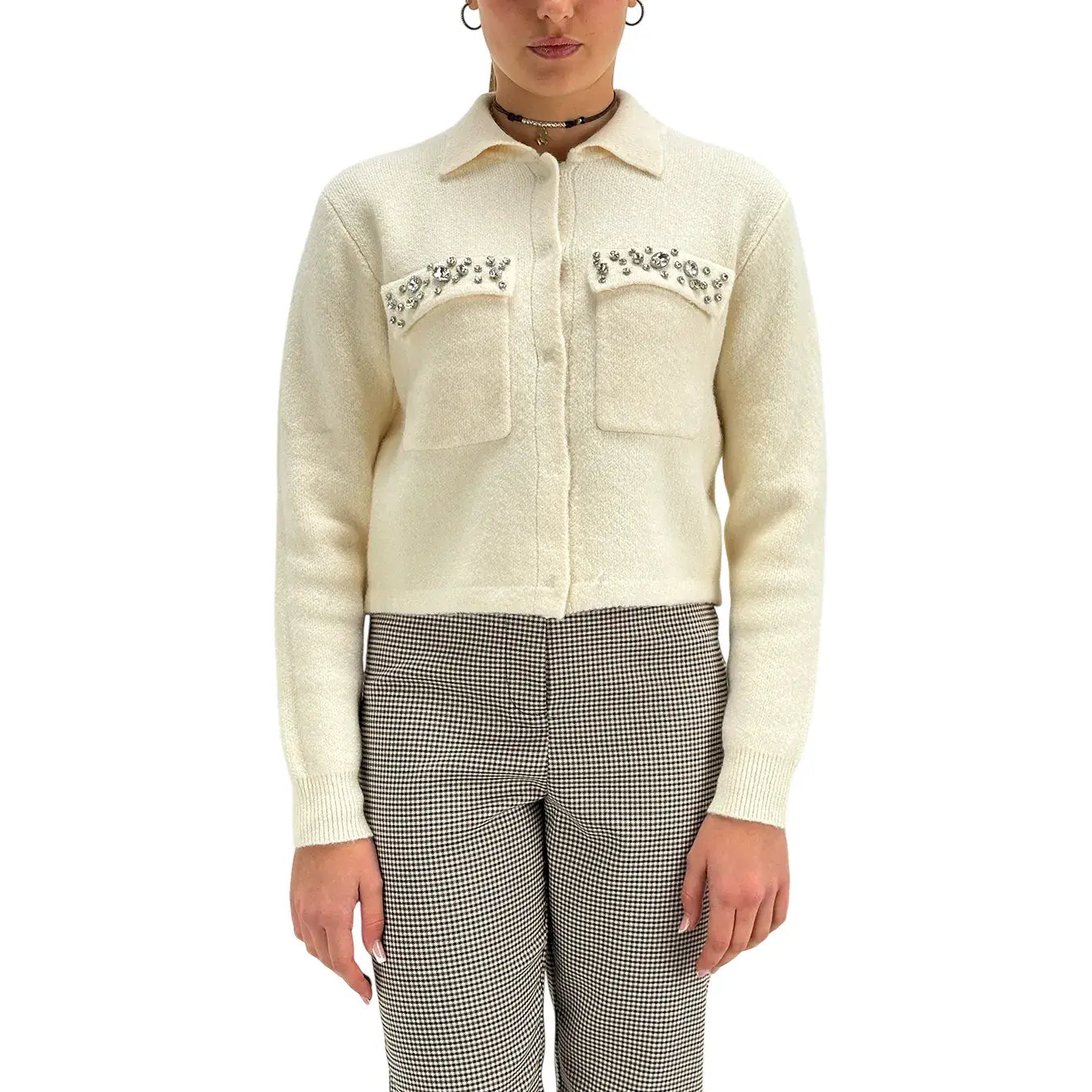 Il cardigan Koralline panna a polo con tasche a castoni unisce stile classico e praticità, offrendo una vestibilità comoda e una texture morbida che valorizza ogni outfit. Perfetto da indossare sopra bluse leggere o maglie a collo alto, aggiunge un tocco elegante e sofisticato anche agli abbinamenti più casual. Un capo versatile, confortevole e di tendenza, ideale per completare il guardaroba femminile con charme e funzionalità.