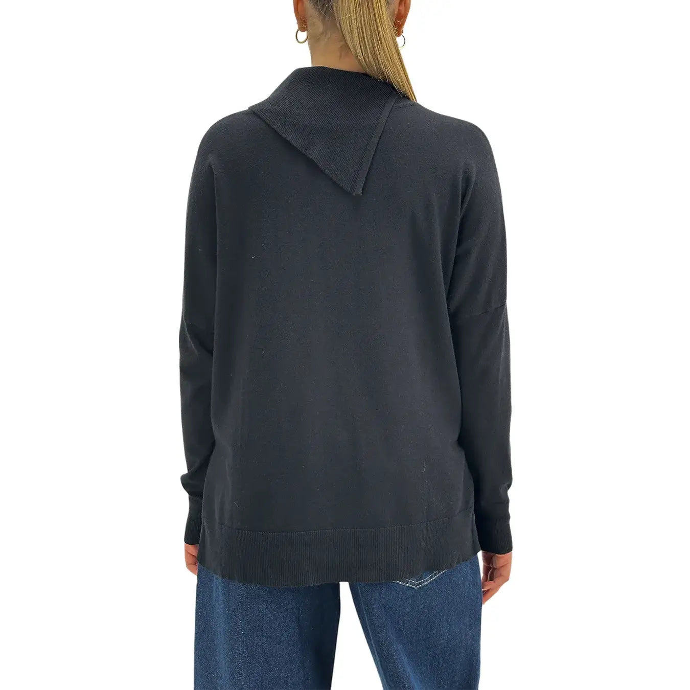 La maglia Koralline nera modello oversize con collo ampio avvolge con morbidezza, offrendo comfort e stile in un unico capo. La vestibilità rilassata e il collo ampio creano un look casual chic perfetto da abbinare a jeans, pantaloni morbidi o gonne, aggiungendo un tocco moderno e sofisticato. Un capo versatile, di tendenza e ideale per arricchire il guardaroba femminile.