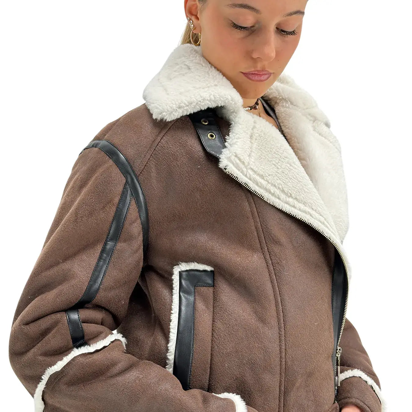 Giubbotto Markup color cacao in ecomontone, caldo e avvolgente, con chiusura a zip che aggiunge un tocco grintoso e contemporaneo. La texture morbida esalta uno stile urban-chic, perfetto con denim e stivaletti per il giorno o con pantaloni neri per un look più ricercato. Un capo di tendenza pensato per comfort e carattere.