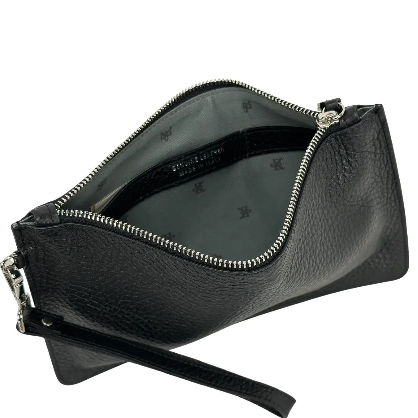 La pochette Cuoieria Fiorentina Brad in nero combina praticità ed eleganza, ideale per studenti e professionisti che vogliono un accessorio versatile. Realizzata in pelle di vitello pieno fiore bottalata, con grana uniforme e mano morbida e rotonda, offre comfort e resistenza. Dotata di unico scomparto con taschino interno, bracciale rimovibile, chiusura zip e logo a fuoco color nickel, si abbina facilmente a outfit classici o sportivi, rendendo ogni look impeccabile. Misura 19 x 28 x 1 cm ed è composta al 100% da pelle di vitello pieno fiore.