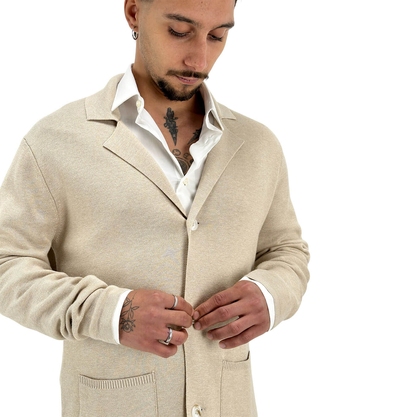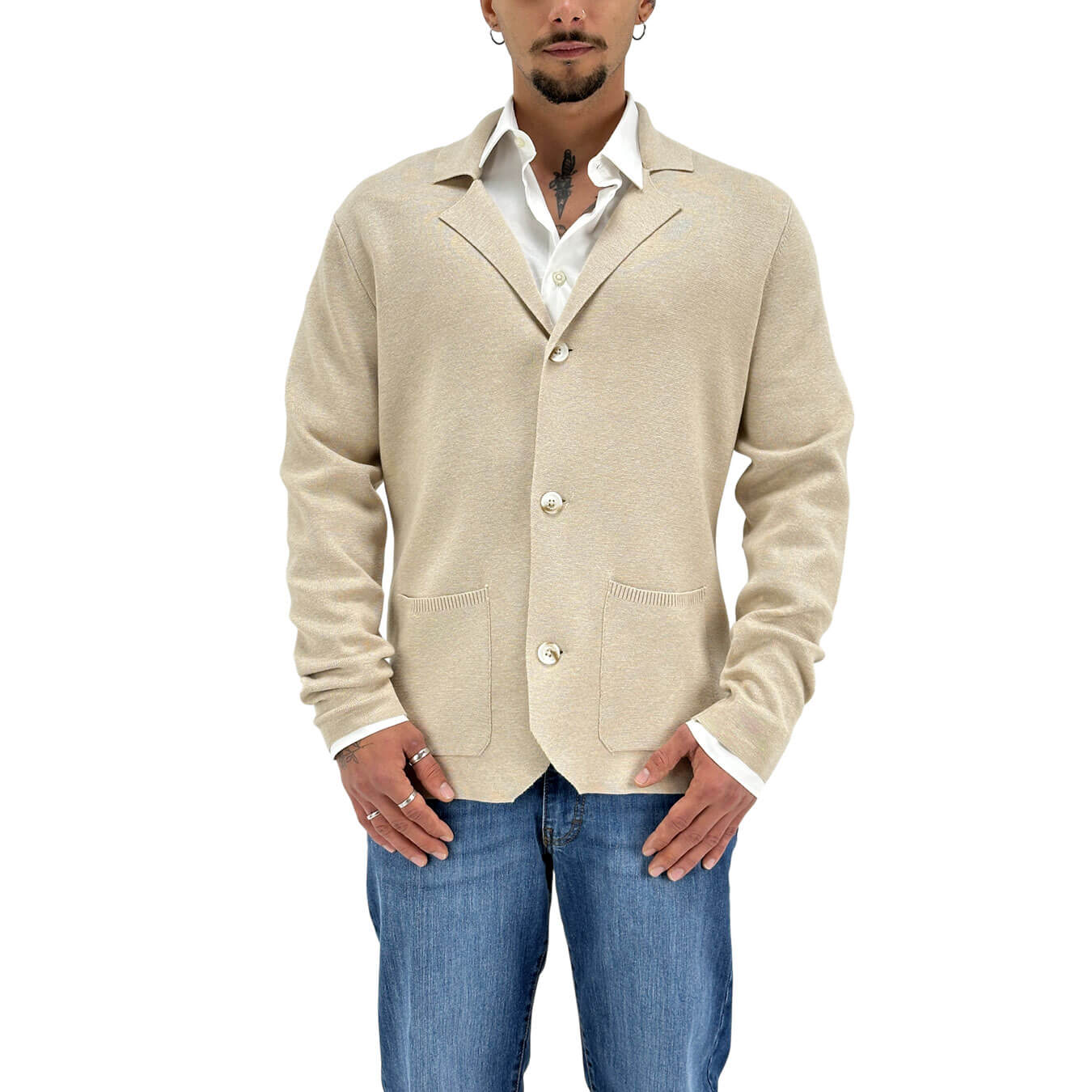 La giacca monopetto in maglia beige Markup è un capo elegante e contemporaneo, realizzato in 80% viscosa e 20% nylon per garantire comfort, vestibilità morbida e stile raffinato. Il colore neutro la rende versatile, ideale da abbinare a pantaloni per outfit da ufficio o look casual chic. La texture in maglia e il taglio slim aggiungono esclusività e stile contemporaneo. Un capo di qualità e design senza tempo.