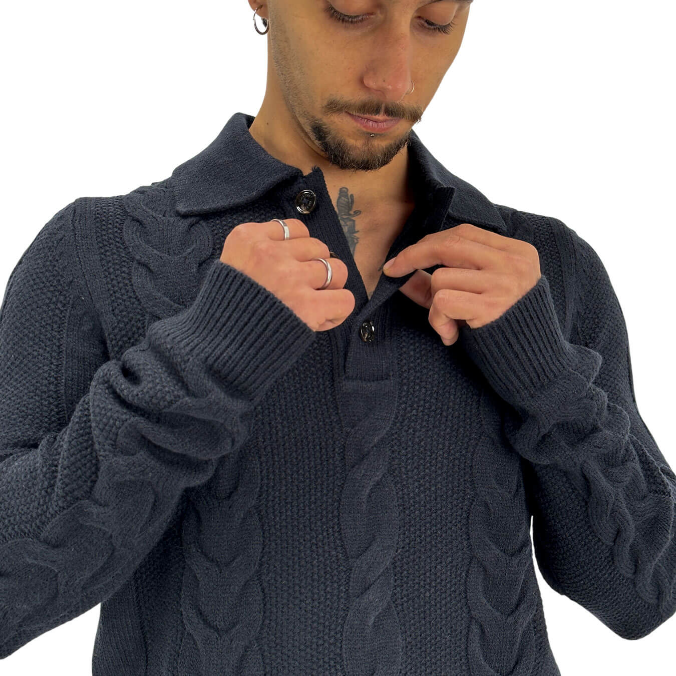 La maglia polo blu Markup finezza 7 con trecce è un capo elegante e contemporaneo, perfetto per l’uomo che cerca look raffinati e confortevoli. Realizzata in 70% acrilico e 30% lana, garantisce calore, morbidezza e una vestibilità naturale. Il colore blu intenso e il dettaglio a trecce aggiungono stile e personalità, ideale da abbinare a pantaloni sartoriali o jeans per outfit casual o formali. Un capo esclusivo e di tendenza.