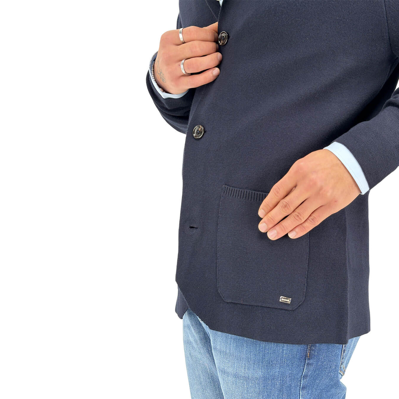 La giacca monopetto in maglia blu Markup è un capo elegante e versatile, perfetto per l’uomo che cerca look sofisticati e contemporanei. Realizzata in 80% viscosa e 20% nylon, garantisce morbidezza, comfort e una vestibilità naturale. Il colore blu intenso valorizza ogni outfit, ideale da abbinare a pantaloni sartoriali o jeans per look casual o formali. Un capo esclusivo, di qualità e di tendenza.