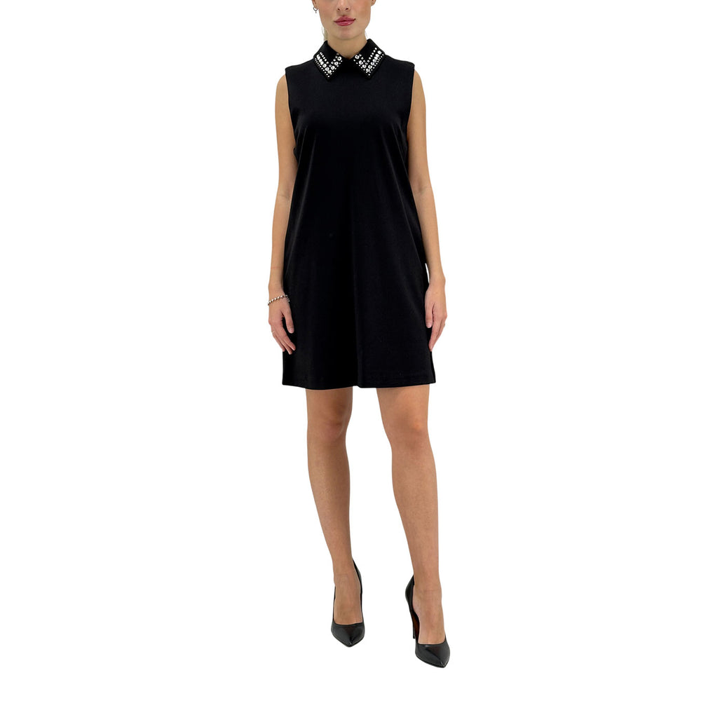 L’abito nero smanicato con colletto decorato da strass di Markup unisce eleganza e stile contemporaneo in un capo sofisticato. Realizzato in morbido mix di viscosa, poliammide ed elastan, avvolge la silhouette con vestibilità confortevole e leggermente elastica. Il colore nero versatile e gli strass luminosi lo rendono perfetto per serate, eventi o cocktail, abbinabile a décolleté o stivaletti. Scegli Markup per qualità, esclusività e fascino senza tempo.