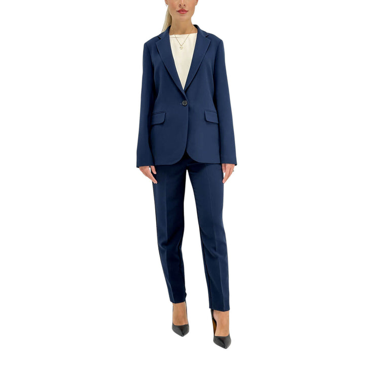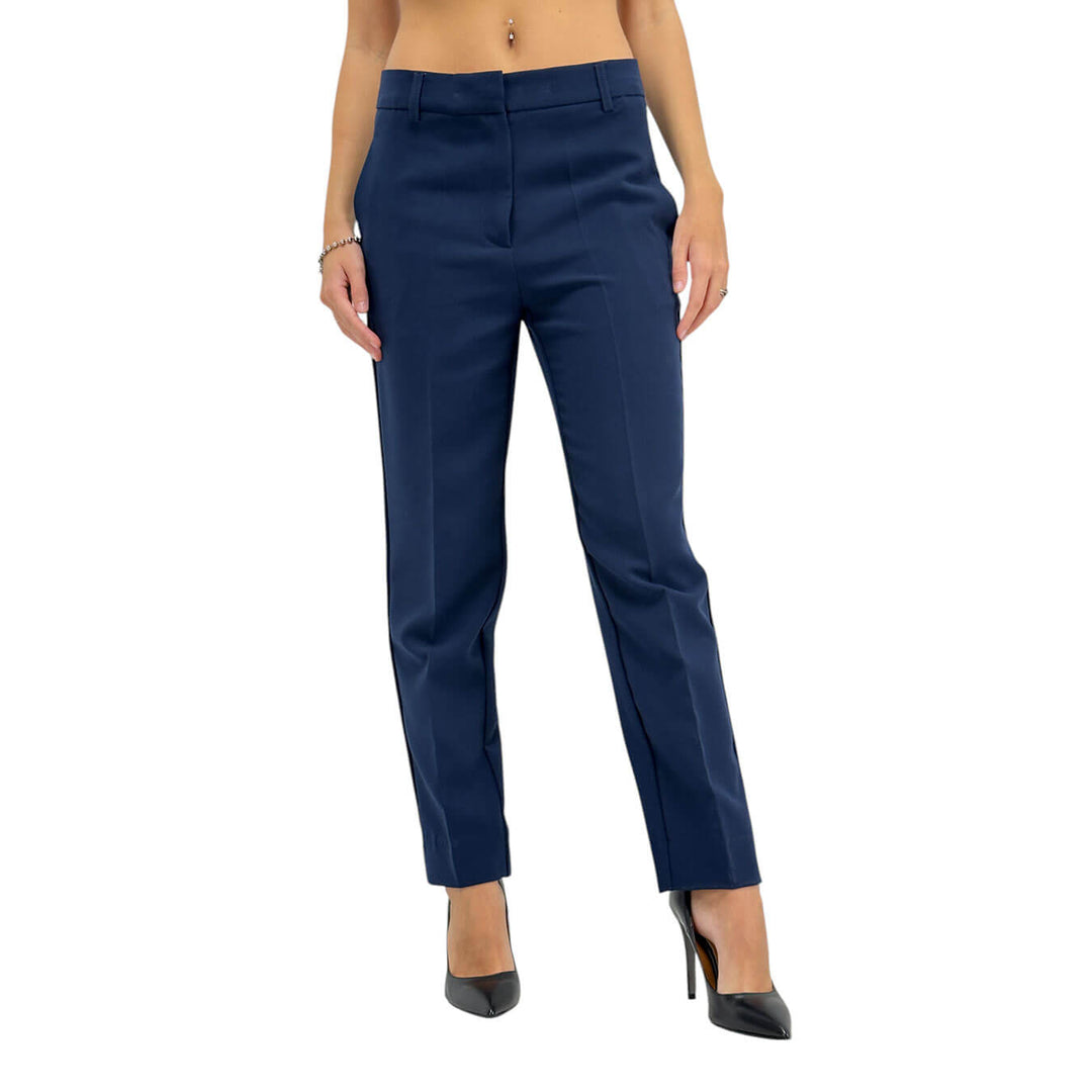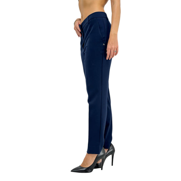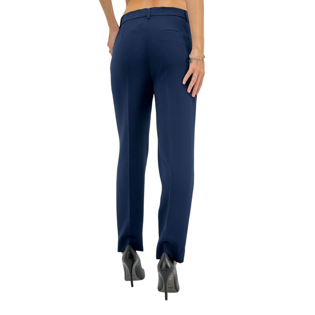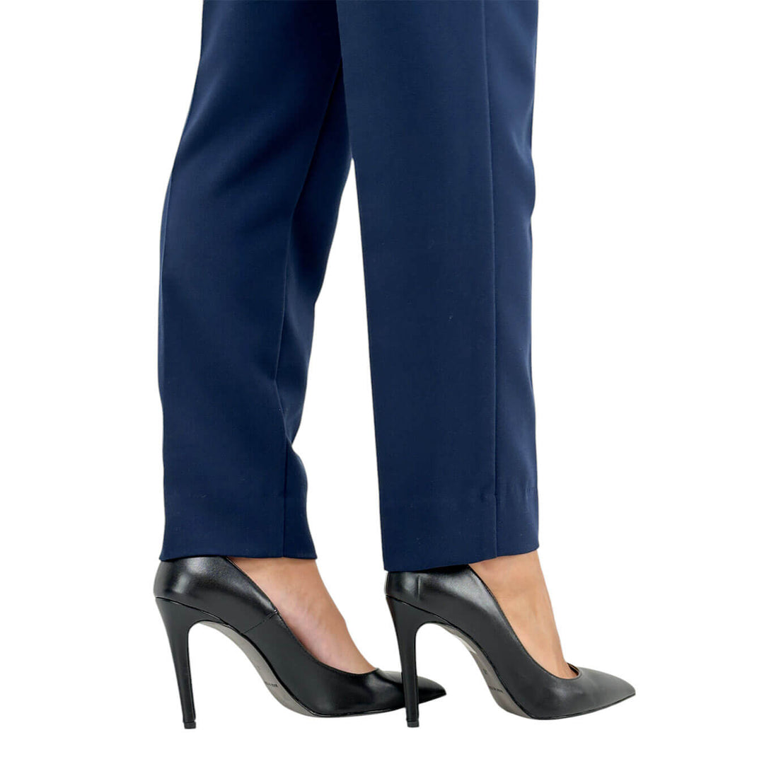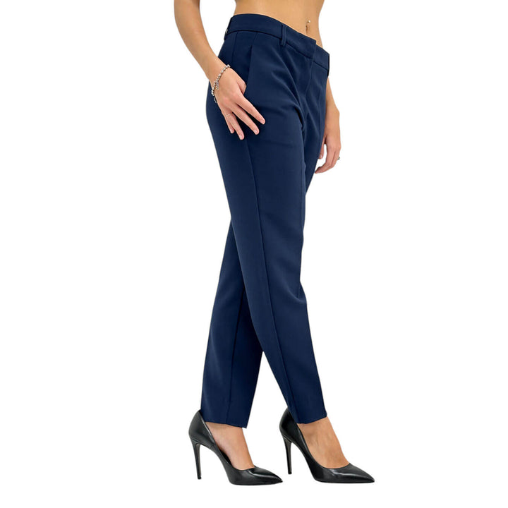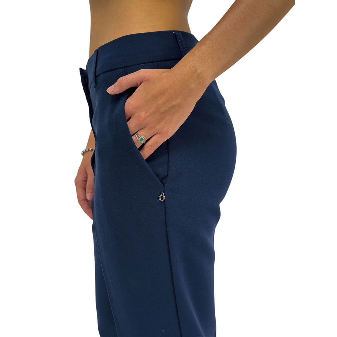 Ottod'ame pantaloni alla caviglia con tasche, perfetti per occasioni formali e informali, combinano eleganza e praticità. Il design semplice e raffinato li rende un capo versatile, ideale da abbinare con diversi look per creare outfit sempre sofisticati. Colore Blu. Composizione 63% poliestere, 32% viscosa, 5% elastan.
