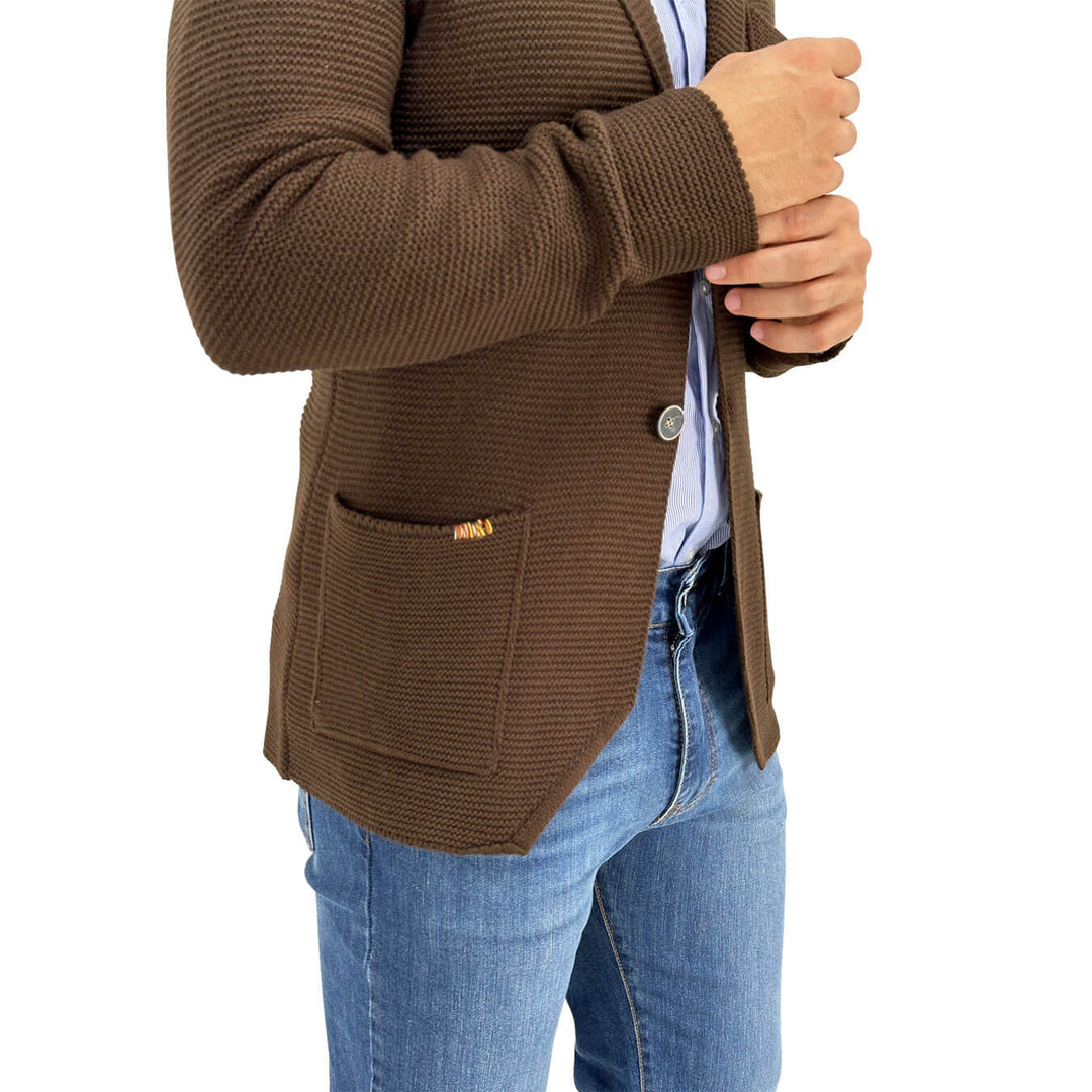 La giacca BL11 moro in maglia con taschino e tasche laterali con dettaglio cucitura è un capo elegante e versatile, perfetto per look smart-casual e outfit sofisticati. Realizzata in 50% lana e 50% acrilico, offre morbidezza, calore e comfort con una vestibilità moderna che valorizza ogni silhouette. Ideale da abbinare a pantaloni sartoriali, camicie o maglie leggere, diventa un must-have del guardaroba autunnale. Aggiungila subito per uno stile contemporaneo e raffinato.