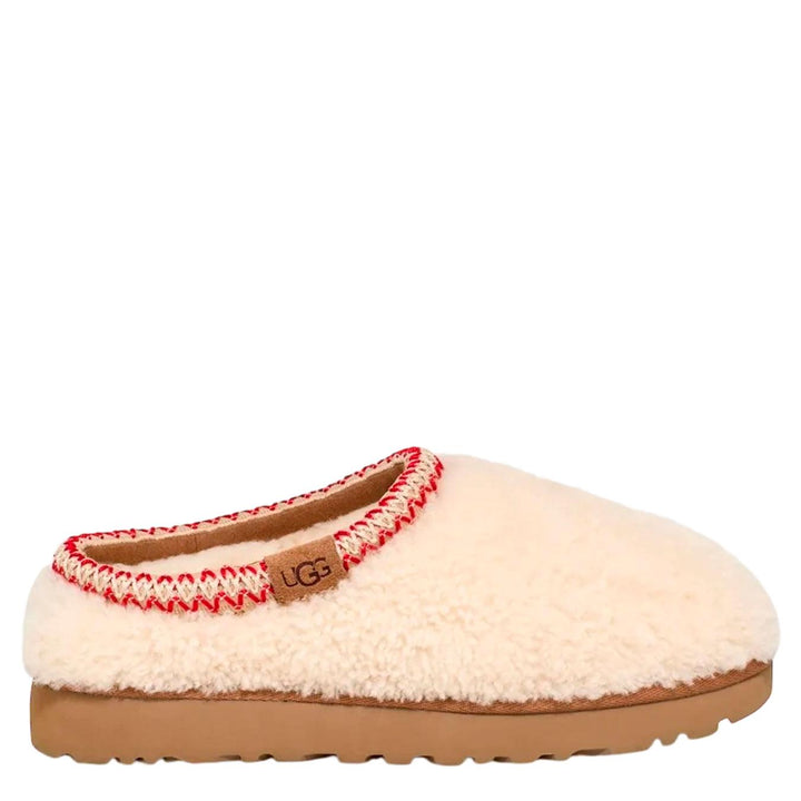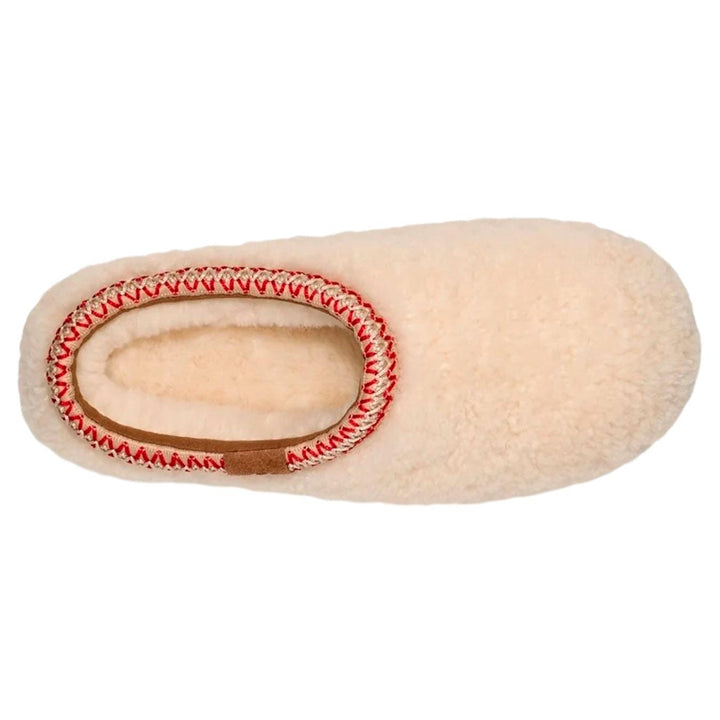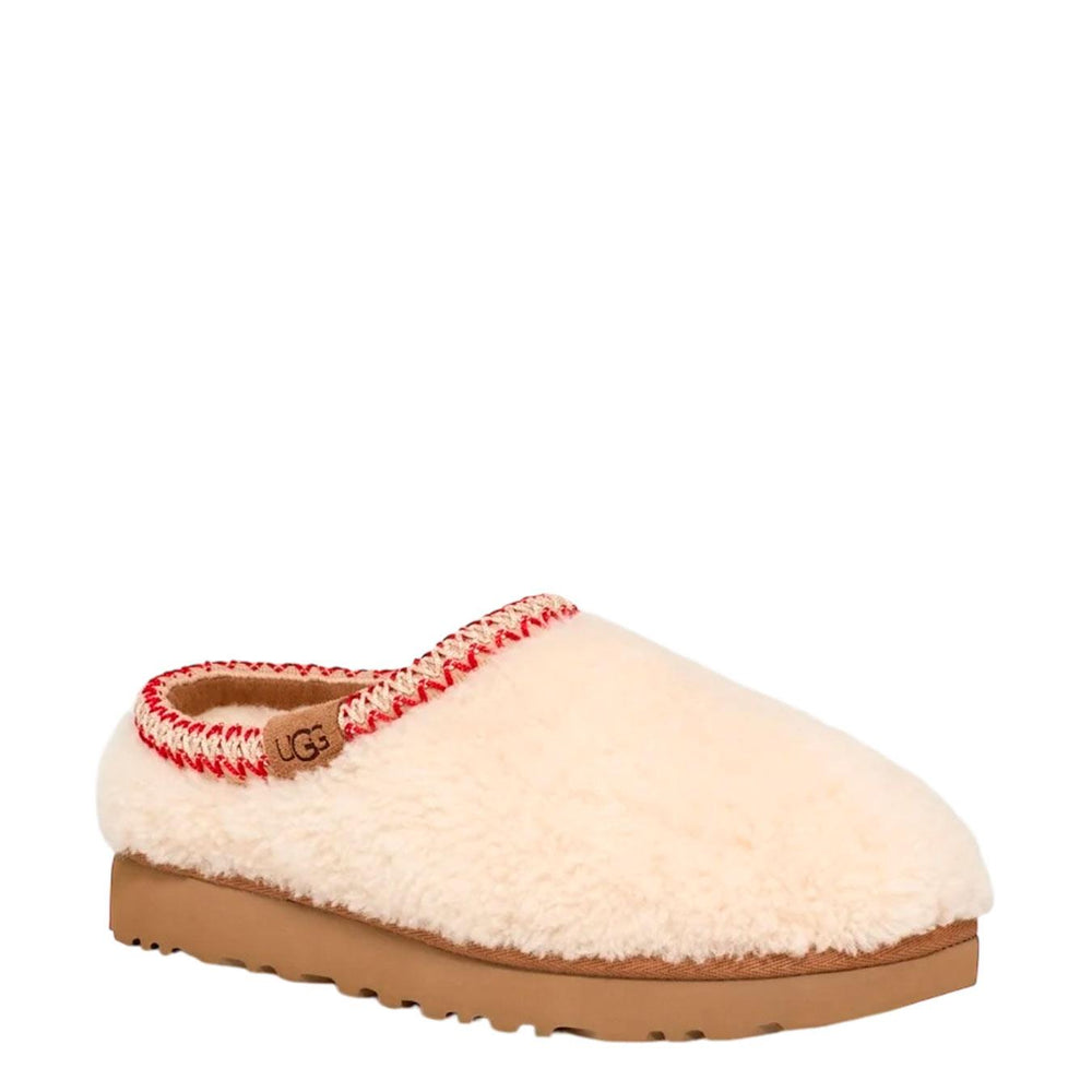 Ugg Tasman women's Maxi Curly slipper, made of high-quality sheepskin with Tasman braid detail. Sheepskin lining and UGGpure™ wool insole for superior comfort. Treadlite by UGG™ sole for lightweight traction. Finished with colored nylon trim for style and durability. Ivory color. Regular fit.