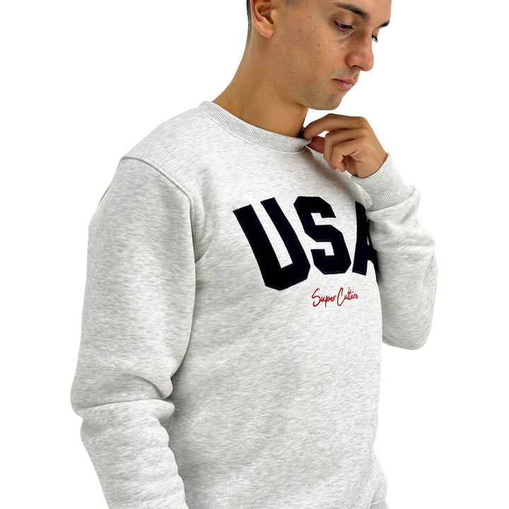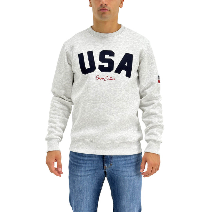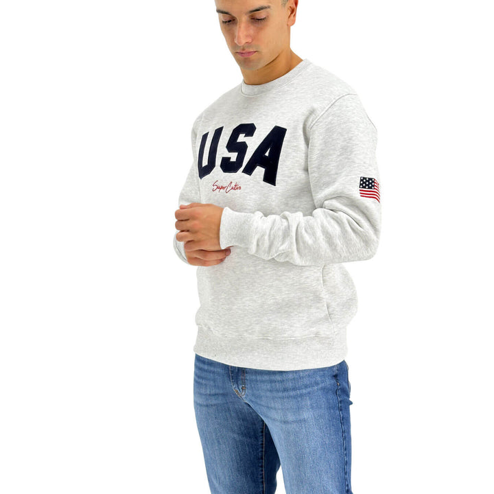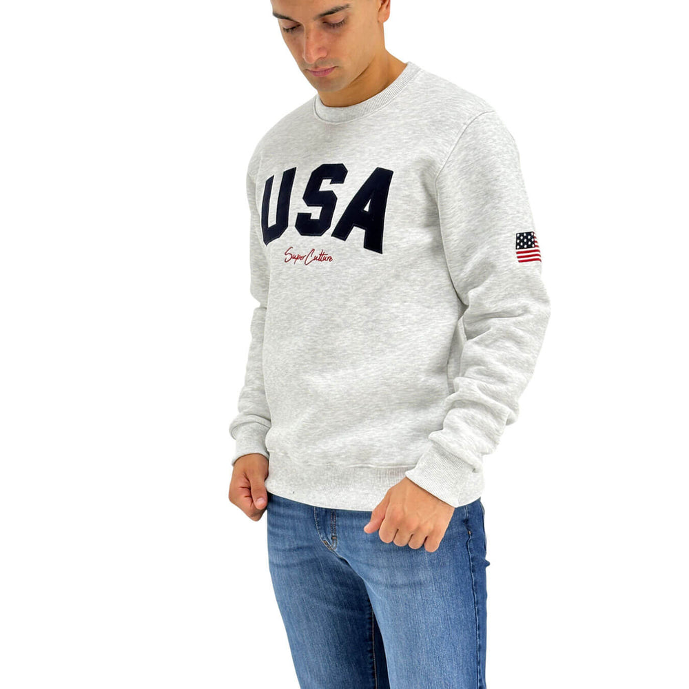 La felpa Superculture grigio girocollo con scritta blu “USA” e bandiera americana sulla manica è un capo streetwear di tendenza, perfetto per look casual e urbani. Realizzata in 65% cotone e 35% polycotton, garantisce morbidezza, comfort e resistenza, con una vestibilità versatile ideale per il tempo libero. Ideale da abbinare a jeans, pantaloni cargo o sneakers, diventa un must-have esclusivo per un outfit contemporaneo. Aggiungila subito al tuo guardaroba per uno stile unico e distintivo.
