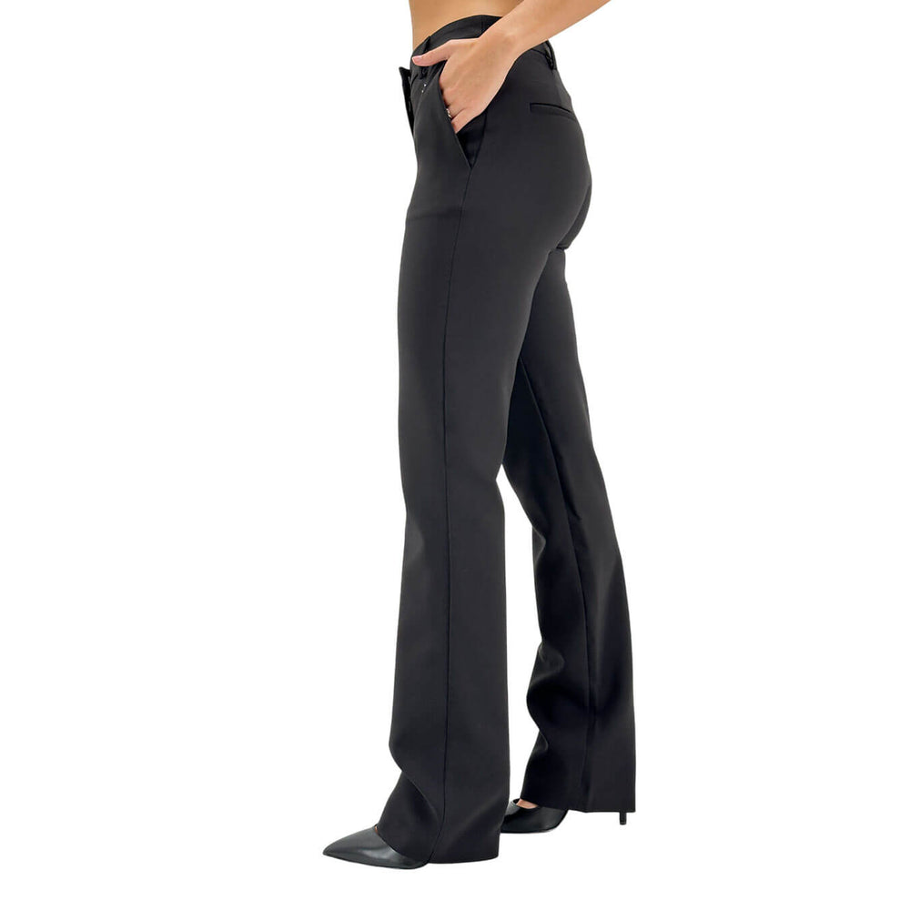 Relish pantaloni donna, modello Cloes a vita alta, le doppie tasche francesi aggiungono un tocco di raffinatezza. La linea a zampa dona al pantalone un tocco moderno e slanciato, perfetto per chi cerca un look chic e versatile, ideale sia per il giorno che per la sera. Colore nero. Composizione 99% poliestere, 1% elastan