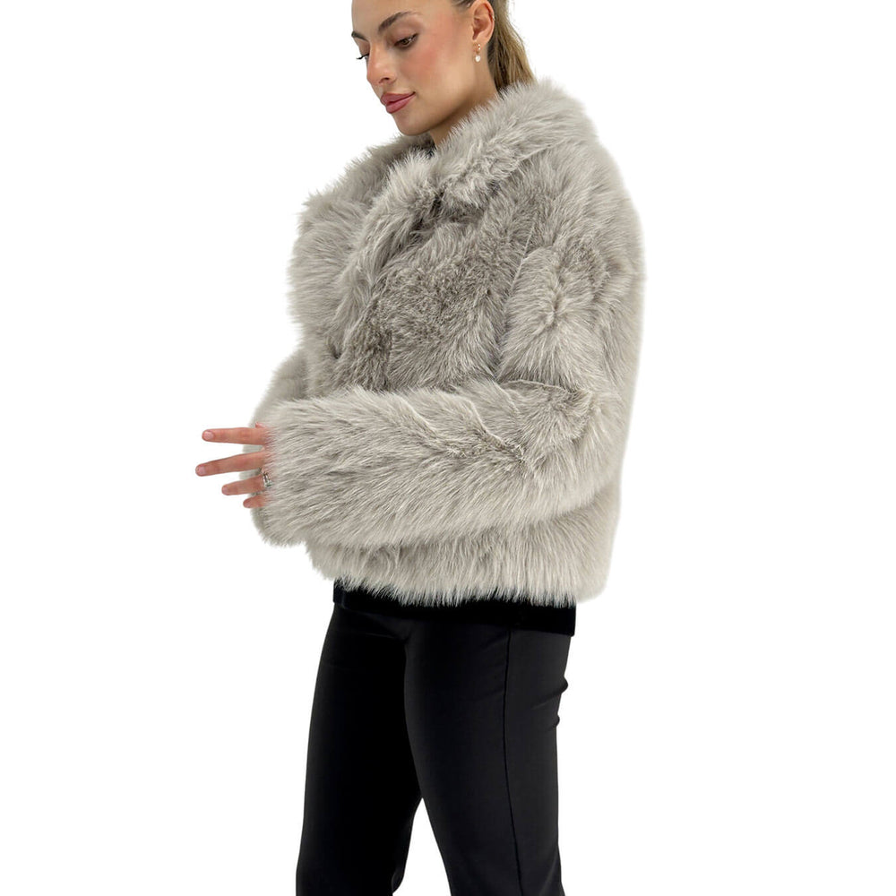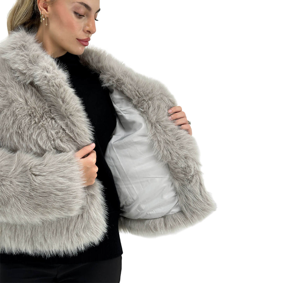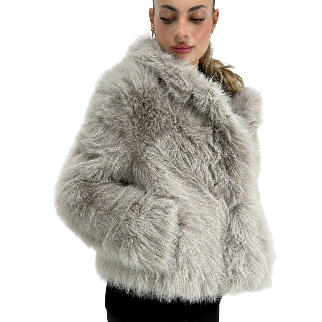 L’ecopelliccia grigia Jengy di Relish è un capo sofisticato e moderno, realizzato in 100% poliestere per garantire morbidezza e comfort senza rinunciare alla sostenibilità. Il modello con tasche e revers valorizza la silhouette con stile elegante, rendendolo perfetto per look da giorno e serate chic. Facile da abbinare a jeans, pantaloni sartoriali o stivali, unisce qualità, tendenza ed esclusività in un capo versatile e di tendenza per la stagione fredda.