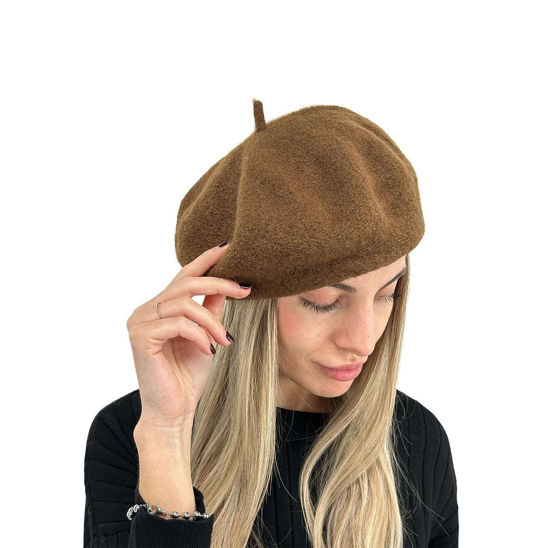 Bassini Women's Hat, Basque Model, Wool Blend, Brown