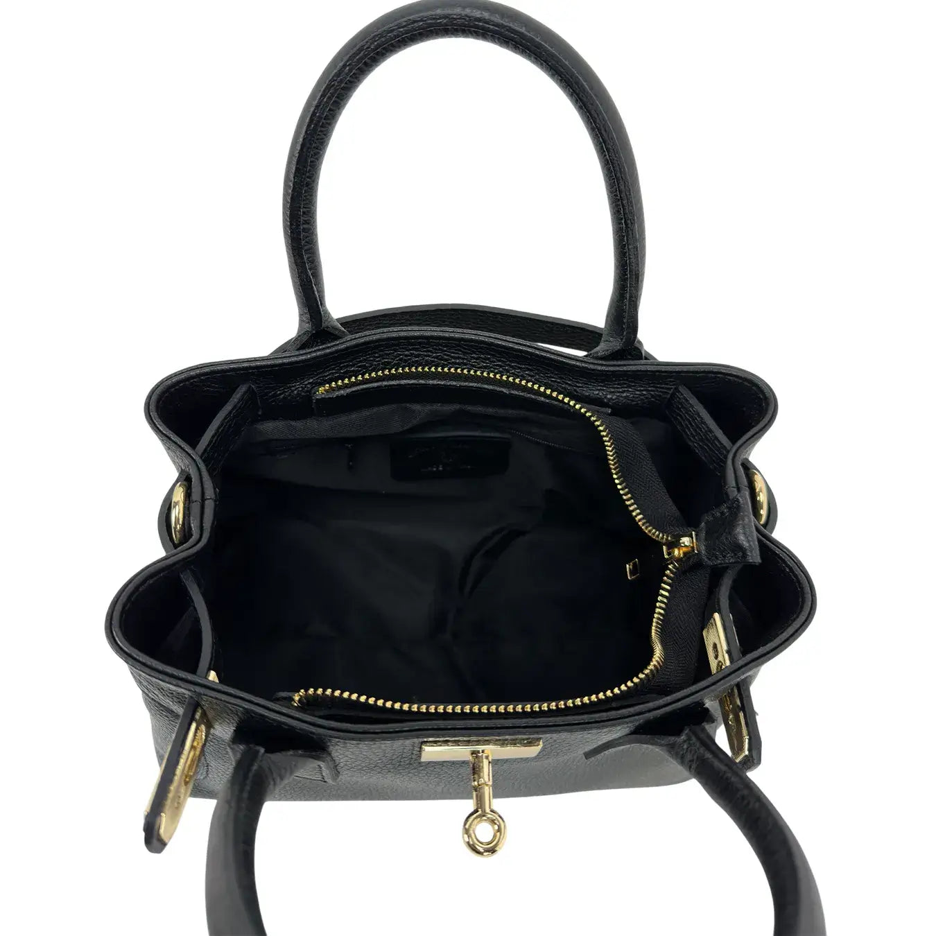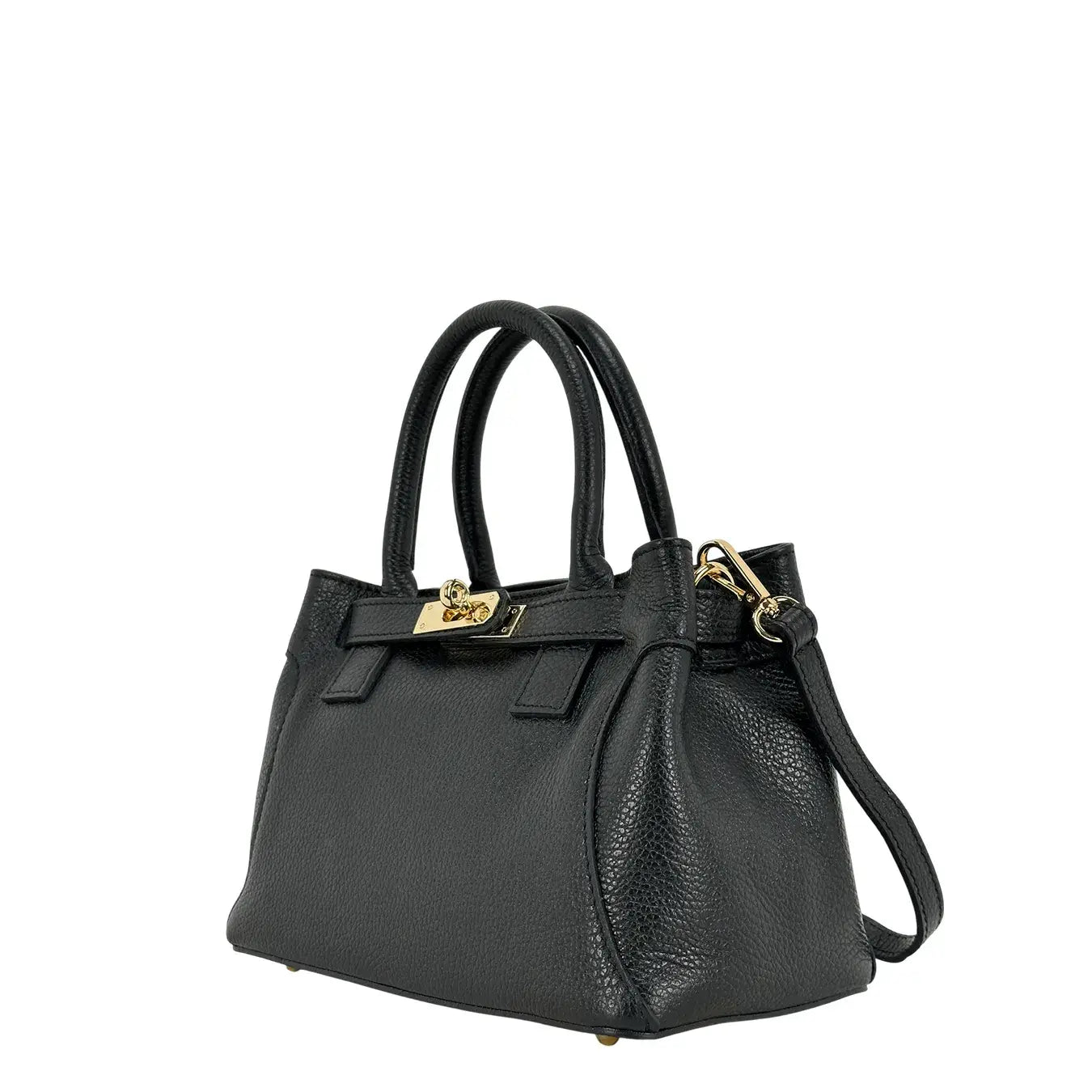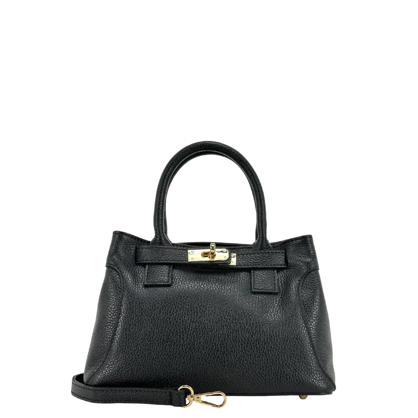Borsa Bassini in vera pelle nera con due manici, un accessorio sofisticato e versatile per chi ama un look elegante e pratico. Le cinghie con chiusura a fermaglio e il rocchetto in metallo color oro conferiscono dettagli ricercati, mentre la chiusura con zip metallica e l'interno foderato con tasca chiusa garantiscono funzionalità quotidiana. La tracolla regolabile e rimovibile con moschettone completa il design, rendendo la borsa perfetta per look casual o professionali. Dimensioni cm. 26x19x14.