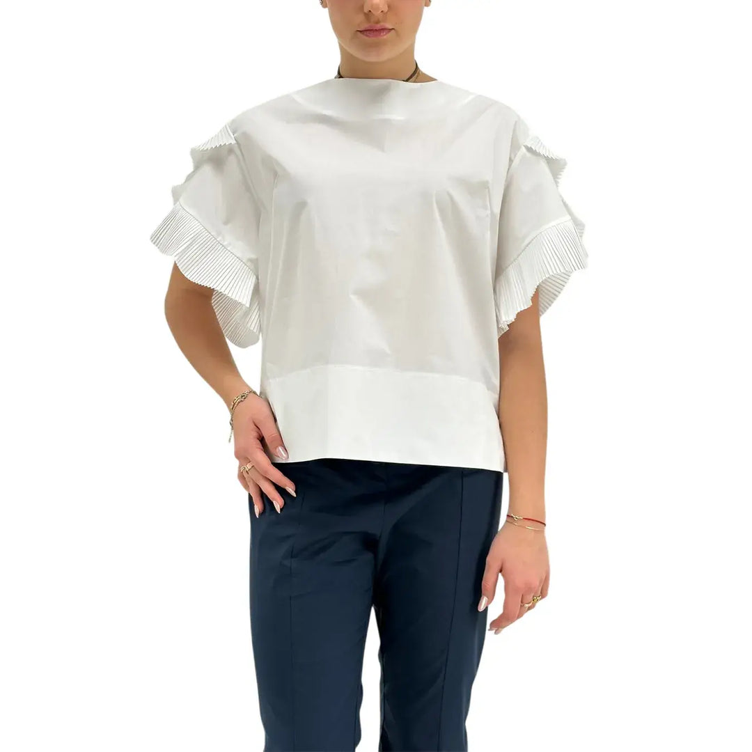 Meimeij, Blusa, Donna, Scollo Plissè, Bianco
