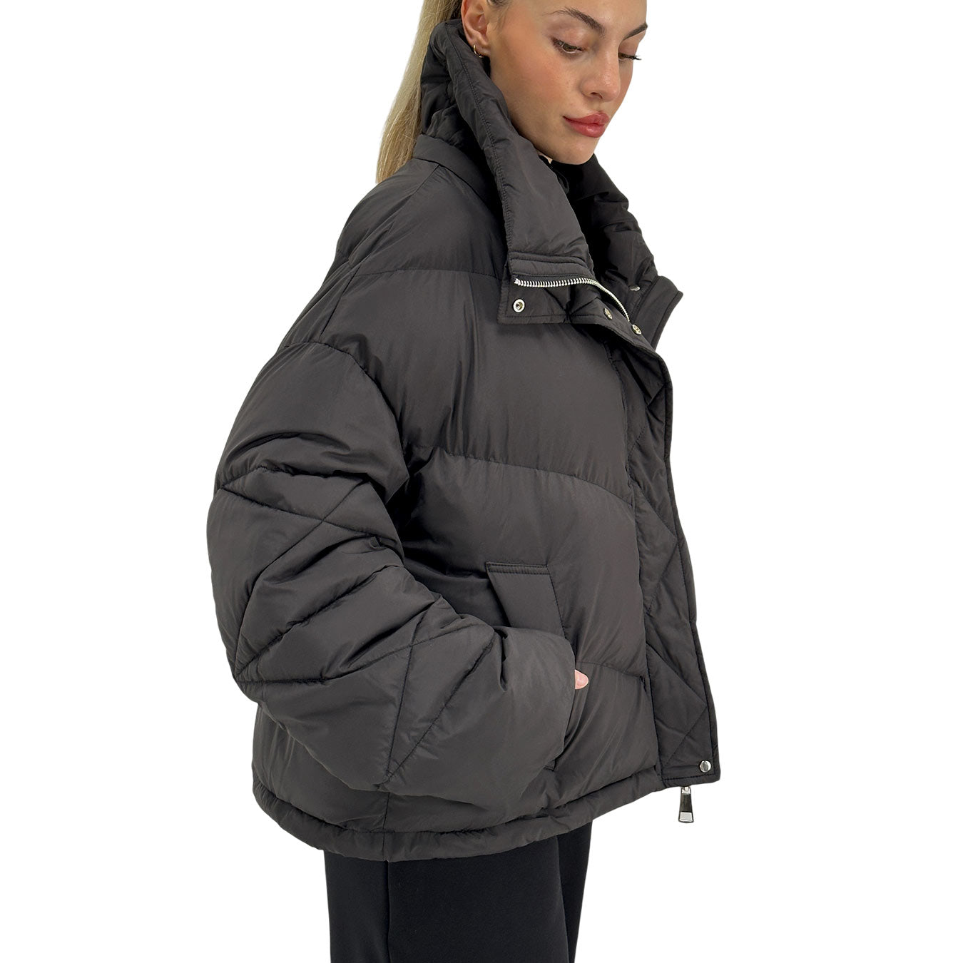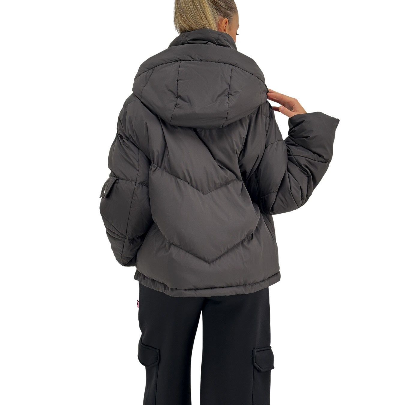 Il piumino nero corto con cappuccio di Oof unisce praticità e stile urbano in un capo versatile e di tendenza. Realizzato in 100% nylon, offre leggerezza e calore senza rinunciare al comfort, mentre le tasche laterali aggiungono funzionalità. La vestibilità corta valorizza ogni silhouette e lo rende perfetto su jeans, pantaloni tecnici o outfit casual chic. Ideale per affrontare le giornate fredde con eleganza moderna, questo piumino è un must-have per il guardaroba invernale.