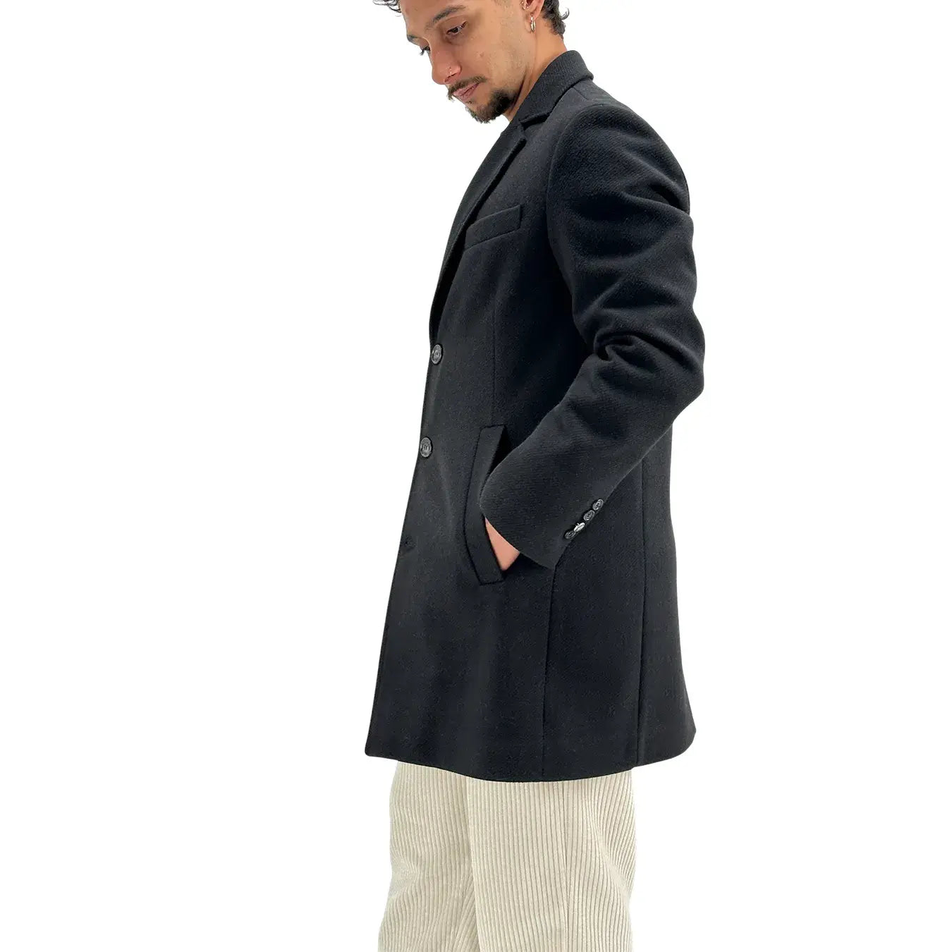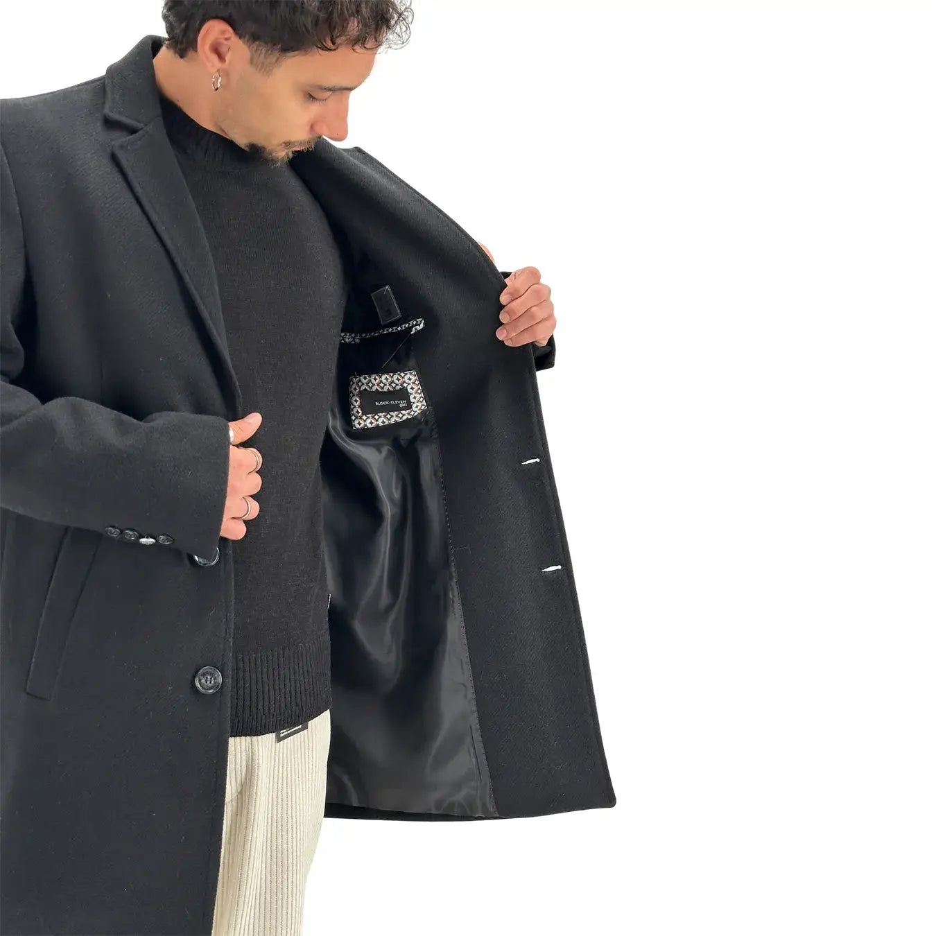 BL11 cappotto nero monopetto a tre bottoni in misto lana, dal taglio classico e raffinato. La vestibilità confortevole e il tessuto caldo lo rendono ideale per affrontare la stagione fredda con eleganza, perfetto sopra abiti o outfit casual chic. Un capo intramontabile che unisce qualità, stile e versatilità, pensato per chi cerca un look sofisticato e moderno. Scopri il comfort e l’eleganza firmati BL11.