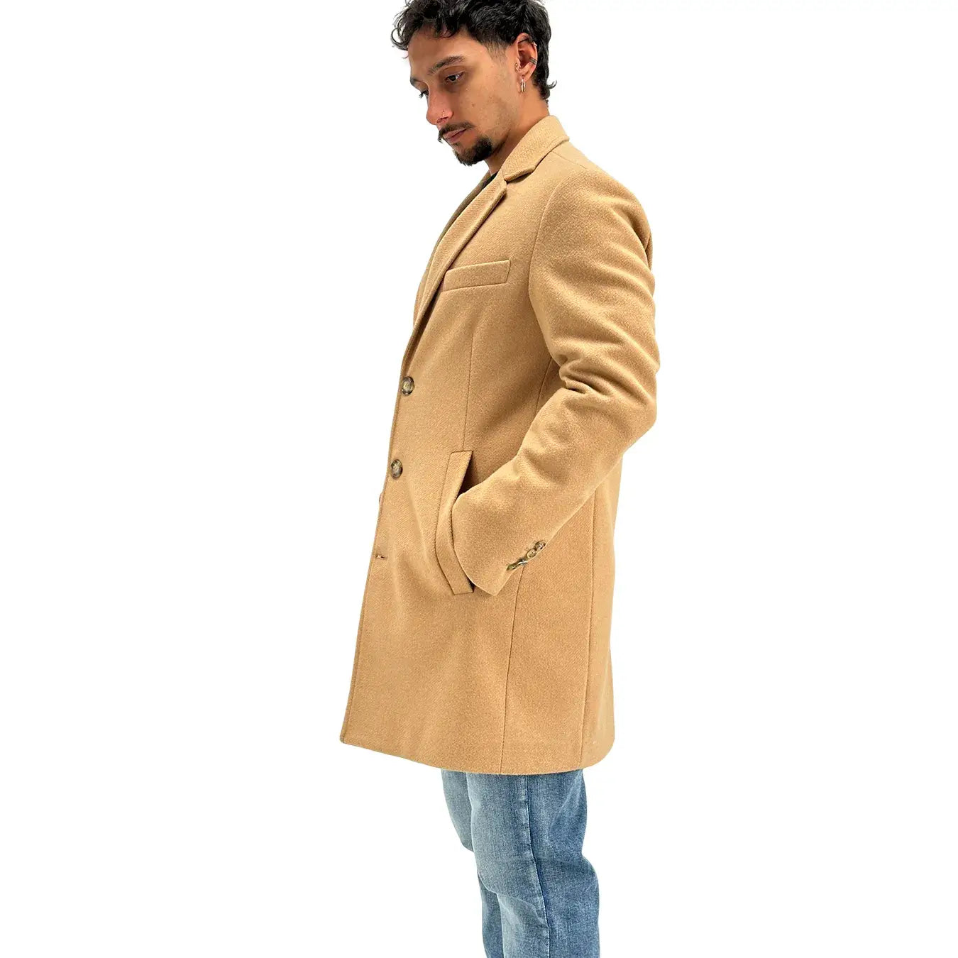 BL11 cappotto cammello monopetto a tre bottoni in misto lana, dal taglio elegante e raffinato. La vestibilità confortevole e il tessuto caldo lo rendono ideale per affrontare la stagione fredda con stile, perfetto sopra abiti formali o look casual chic. Un capo intramontabile che unisce qualità, comfort e versatilità, pensato per valorizzare ogni outfit maschile con raffinatezza contemporanea.
