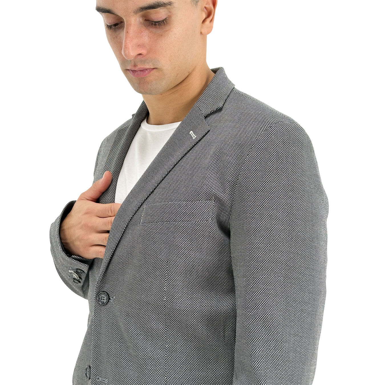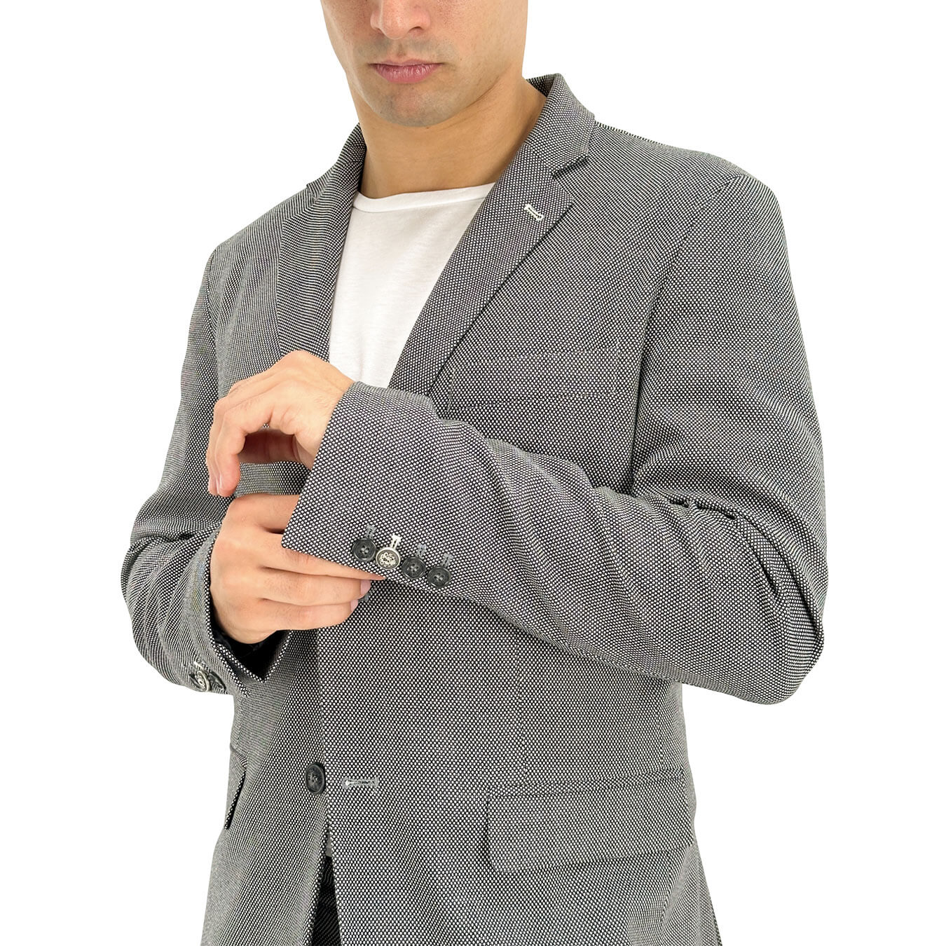 La giacca BL11 grigio occhio di pernice combina eleganza classica e stile contemporaneo, realizzata in un mix di lana 45% e poliestere 45% con 2% elastan per garantire comfort e vestibilità perfetta. Il motivo occhio di pernice dona un tocco sofisticato, ideale per outfit formali o smart casual. Perfetta da abbinare a pantaloni chino o jeans, assicura qualità, esclusività e tendenza. Aggiorna il tuo guardaroba con questa giacca versatile e raffinata.