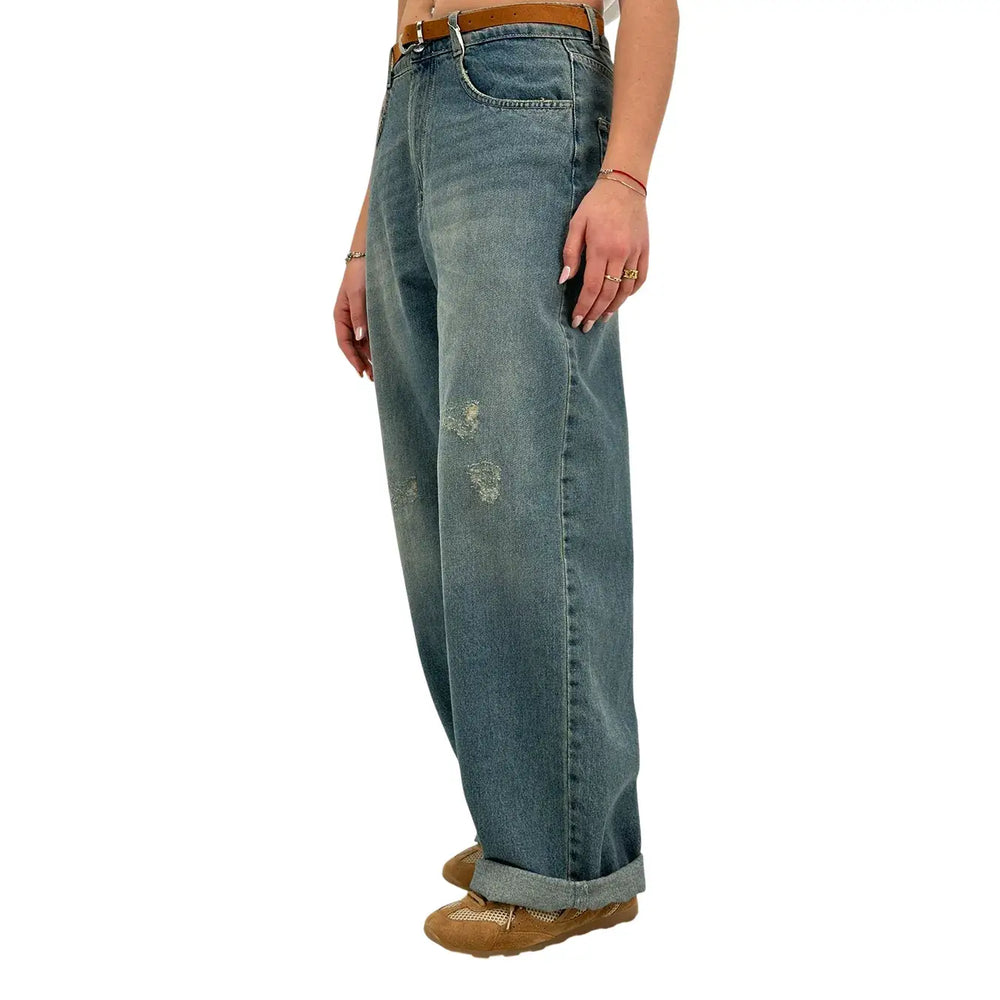 Motel Women's Pants, Jeans, Loose, Cotton, Blue