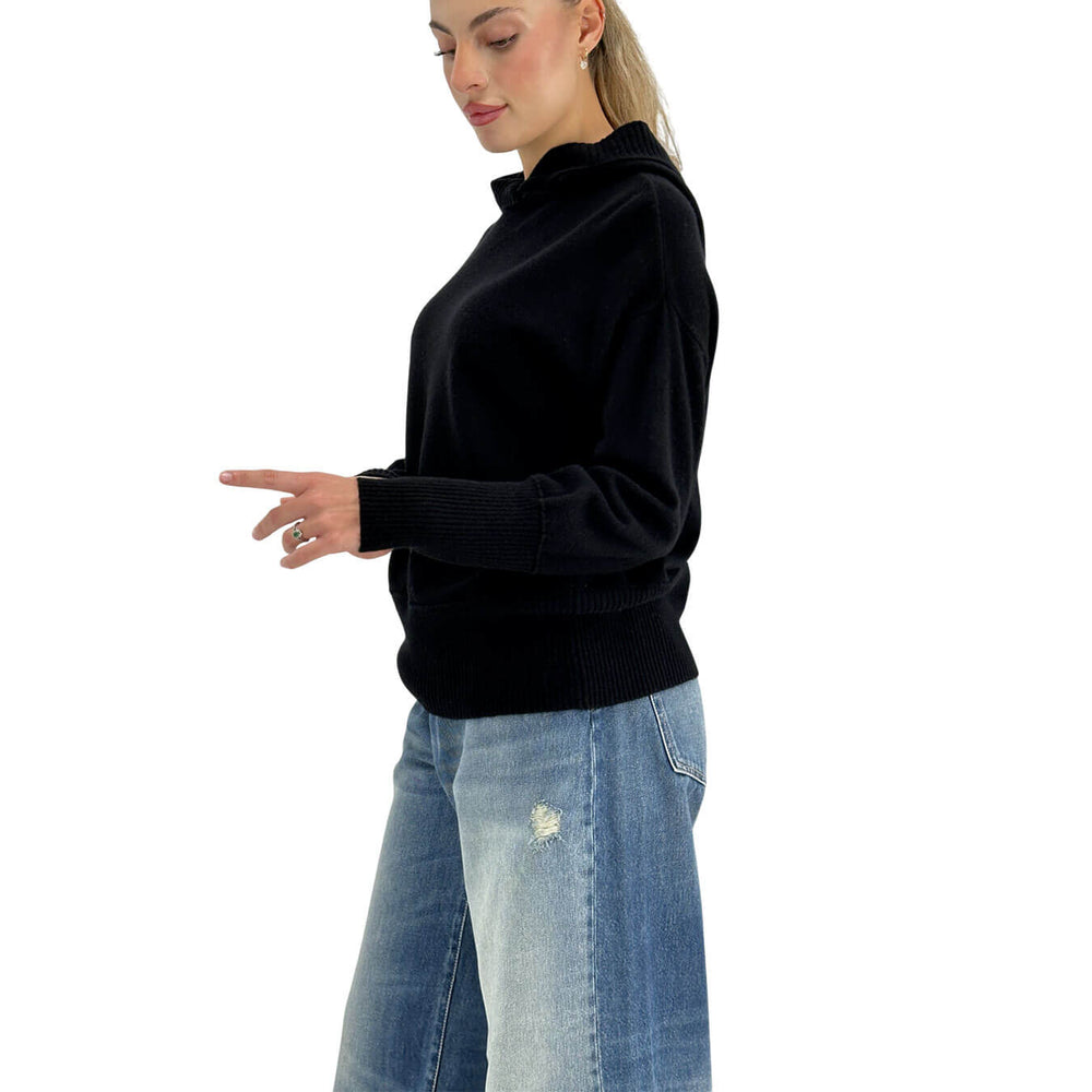 La maglia nera Erall di Relish con cappuccio e manica lunga è un capo versatile e contemporaneo, realizzato in 100% lana per garantire calore, comfort e morbidezza. La vestibilità morbida e il design minimal con cappuccio la rendono ideale per look casual eleganti, perfetta da abbinare a jeans, pantaloni sartoriali o gonne midi. Unisce qualità, esclusività e tendenza in un capo pratico e raffinato, ideale per completare il guardaroba invernale con stile.