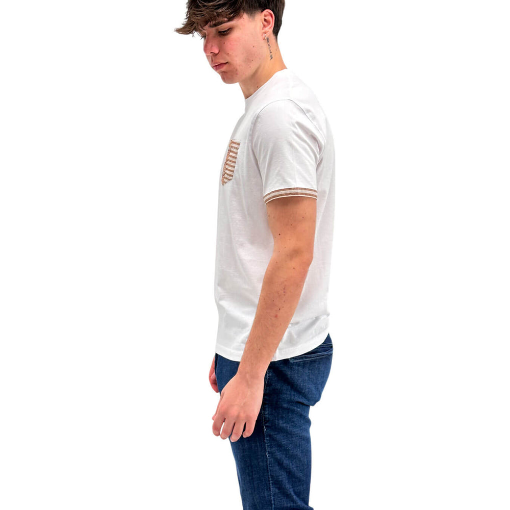 MarkUp basic men's crew neck t-shirt, made of lightweight and breathable pure cotton, pleasant to the touch on the skin. Regular fit, crew neck and short sleeves, decorative colored pocket. Perfect for creating trendy and casual outfits for any occasion. White color. Composition: 100% cotton.