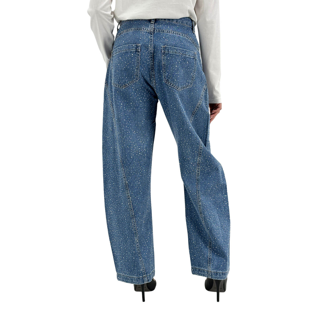 I jeans blu medio Tensione In modello barrel uniscono stile e comfort grazie al tessuto leggermente elasticizzato in 98% cotone e 2% elastan. L’applicazione full strass aggiunge un tocco esclusivo e luminoso, rendendo il capo perfetto per look casual-chic o serate trendy. La vestibilità barrel valorizza la silhouette con un fit moderno e confortevole, ideale da abbinare a top basic, bluse eleganti o giacche in eco pelle. Codice: 25ai254195
