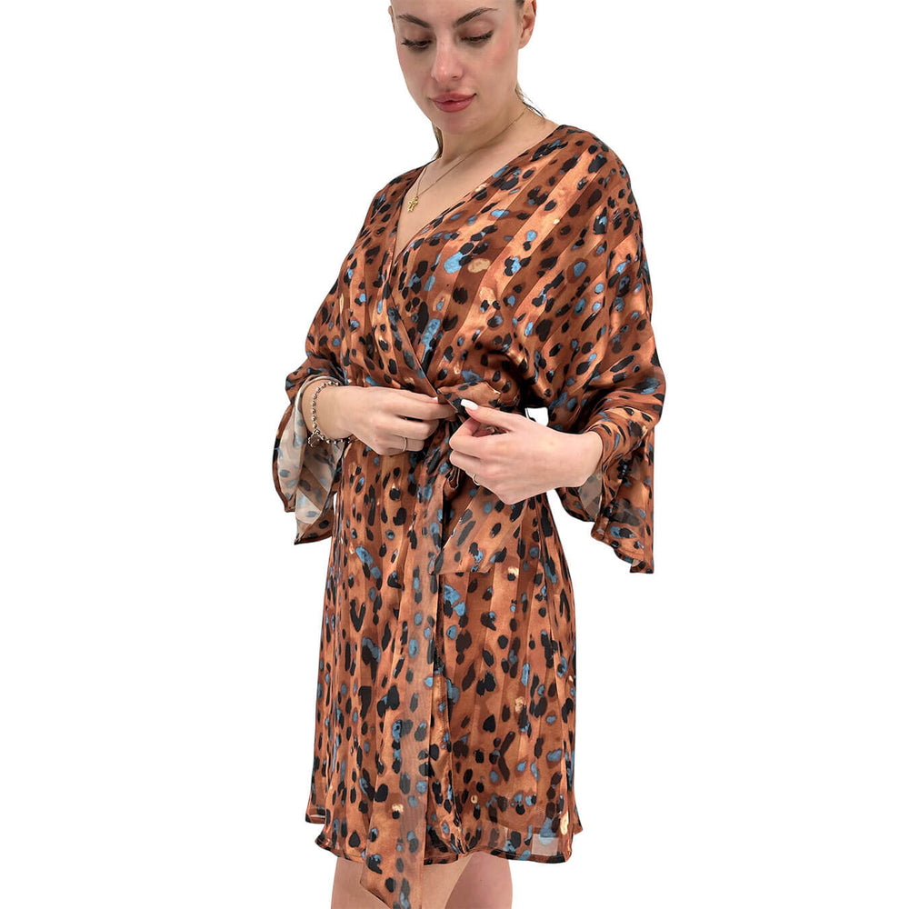 Koralline Women's Dress, Kimono Model, Animal Print, Brown