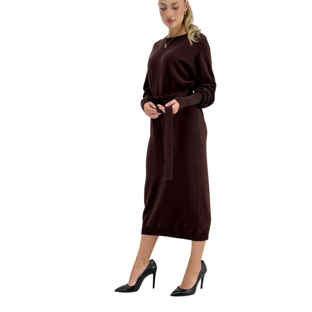 L’abito marrone Harpen di Relish esprime un’eleganza sobria e contemporanea. Il modello midi a manica lunga, realizzato in 100% lana, avvolge la silhouette con una vestibilità confortevole e naturale. La cintura in vita valorizza le forme, mentre il design raffinato lo rende ideale per l’ufficio, una cerimonia o una serata elegante. Perfetto con stivali in pelle per un look moderno o con décolleté per un tocco più classico, unisce qualità, esclusività e tendenza in un unico capo versatile.
