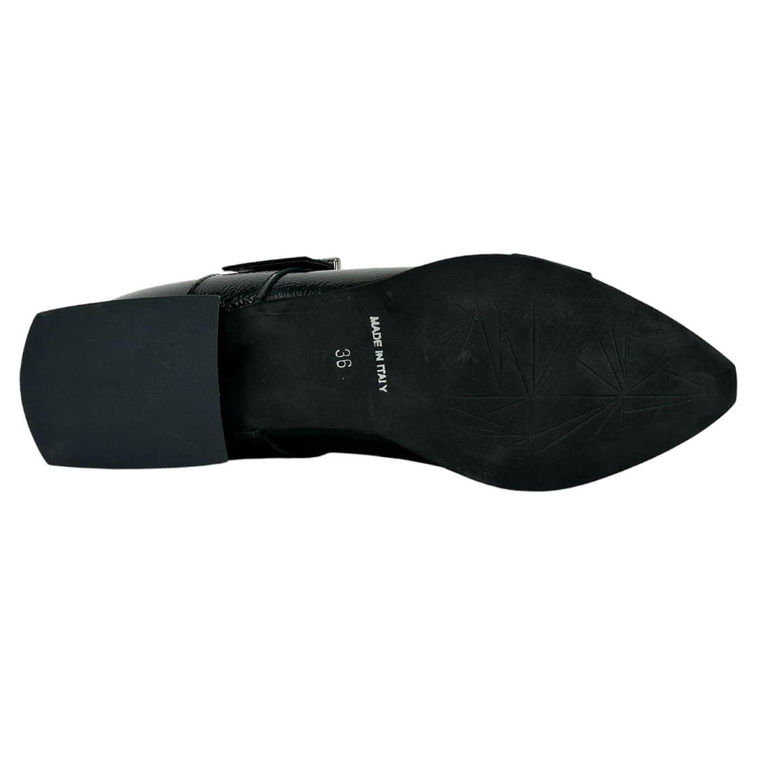 Divine Follie s women's shoes, made of high quality naplak leather. Slightly tapered toe, two front straps with studs adjustable via maxi metal buckles. Non-slip synthetic sole, 2 cm high heel. Made in Italy, these shoes offer a timeless style for every occasion. Black color. Regular fit.
