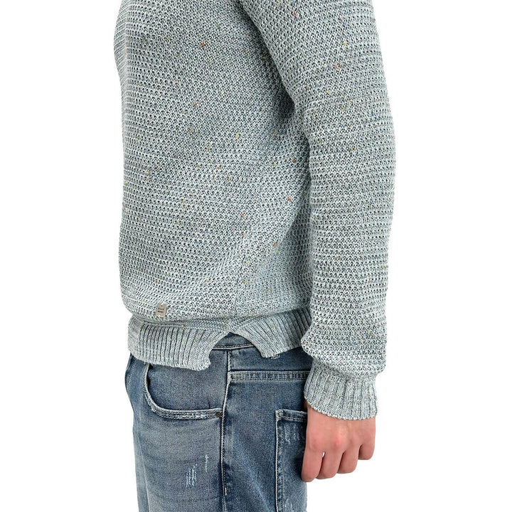 BL.11 Block Eleven maglia girocollo uomo, in tessuto misto lavorazione a chicco di riso, leggera e fresca. Girocollo, la manica lunga, dettagli a coste su polsini e fondo creano un look classico. Colore celeste. Composizione: 50% cotone, 50% acrilico. Vestibilità regolare. Questa maglia si abbina facilmente a jeans e sneakers per un outfit casual.