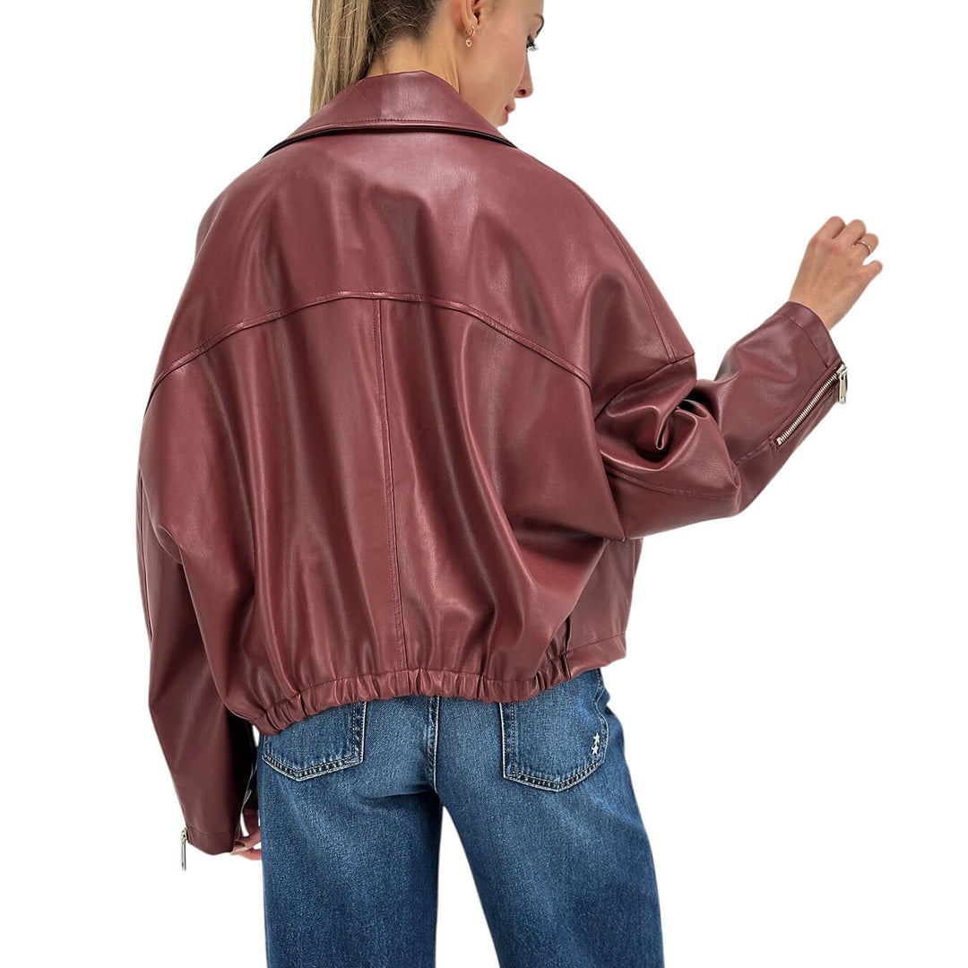 Motel Giubbotto Donna, Modello Chiodo, Pelle Ecologica, Rosso