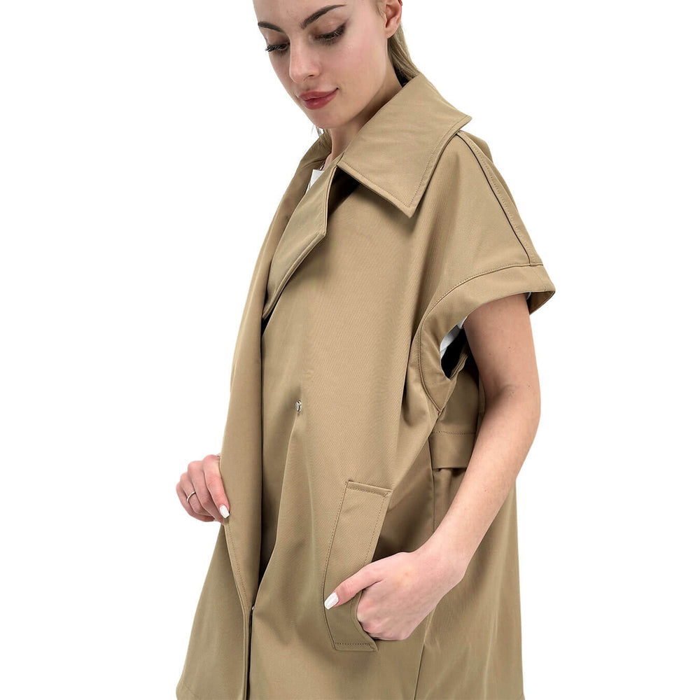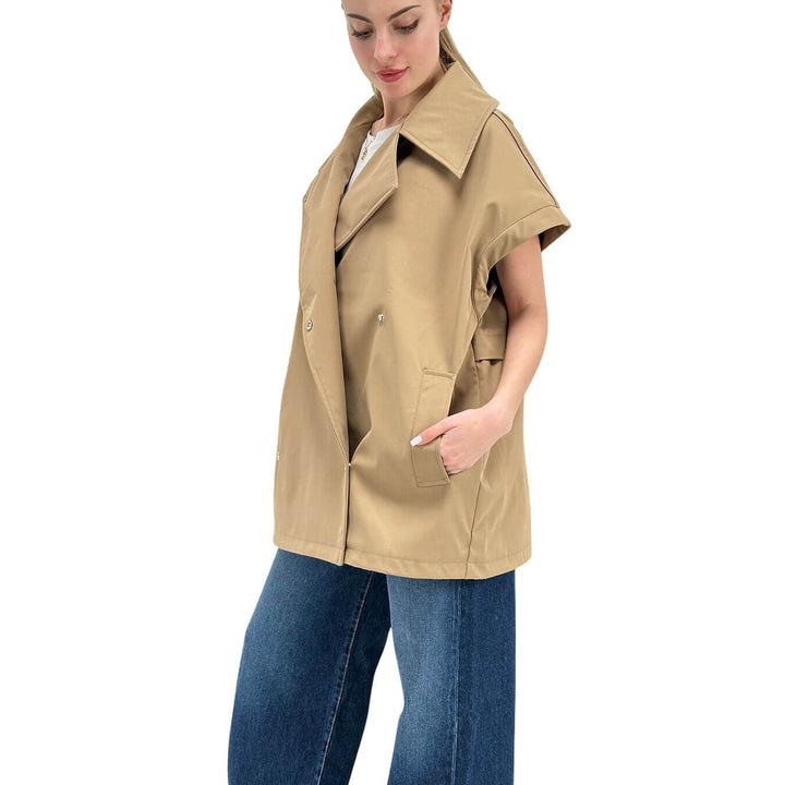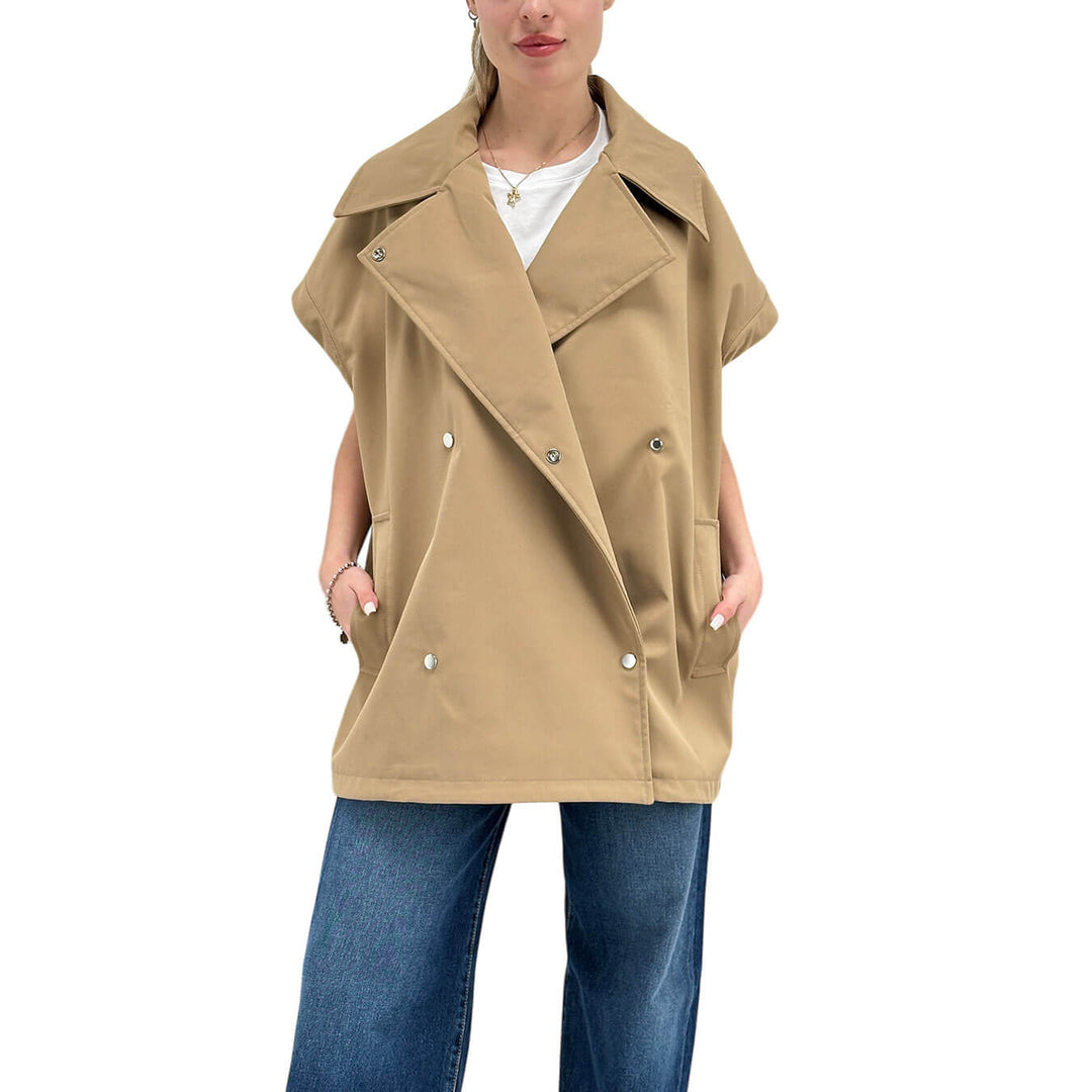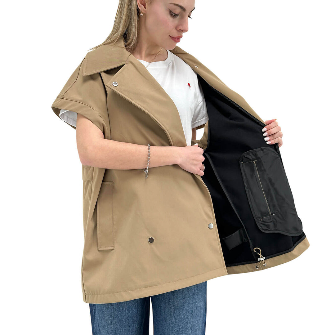 Oof Wear Gilet Donna, Over, Doppiopetto, Maxi Tasche, Beige