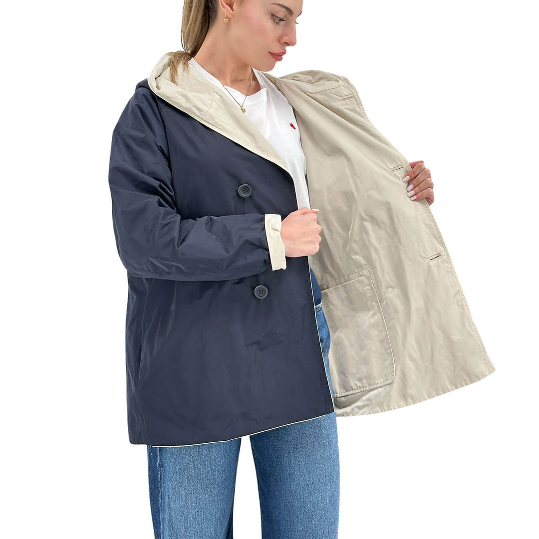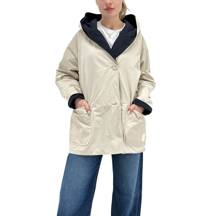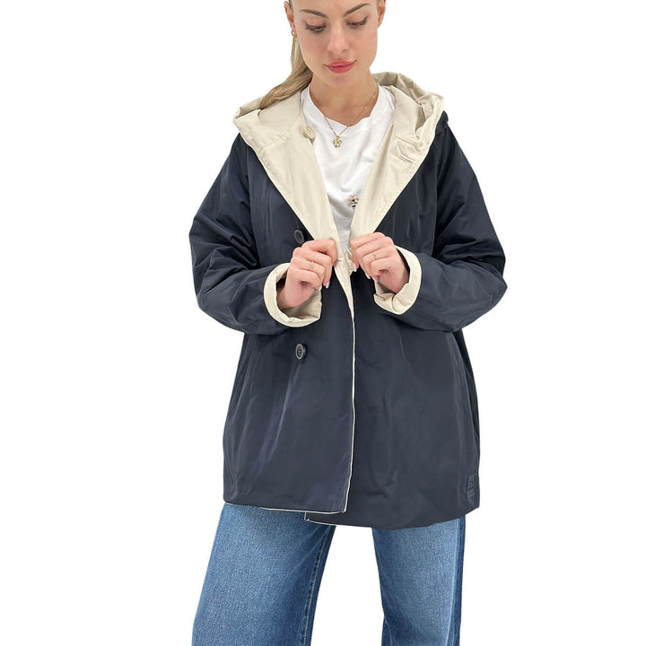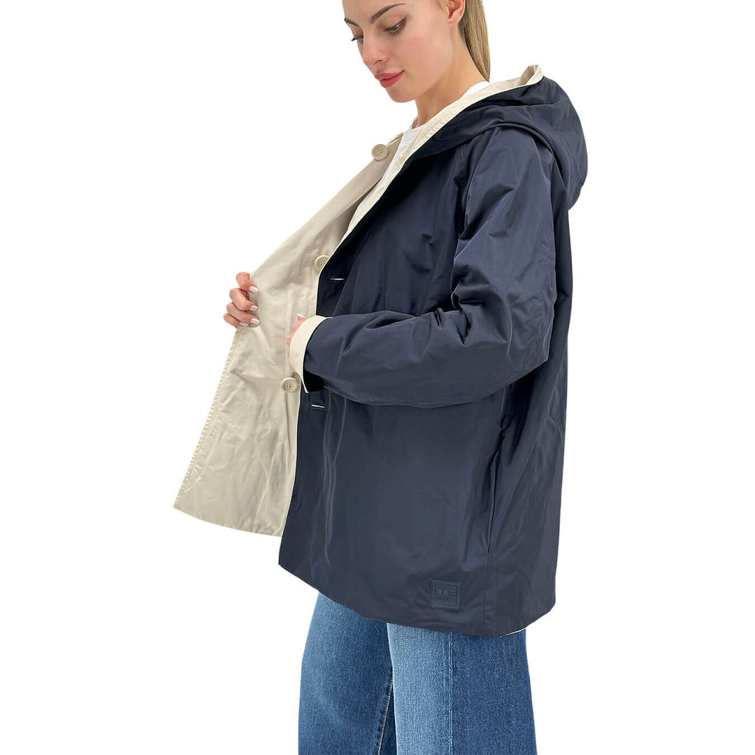 Oof Wear Giacca Donna, Reversibile, Cappuccio, Panna e Blu
