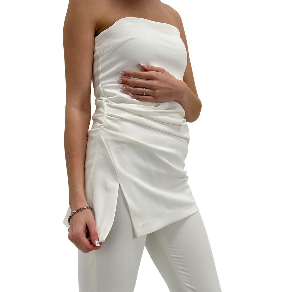 Relish Top Cosimo Donna, Fascia con Pieghe, Spacco, Bianco