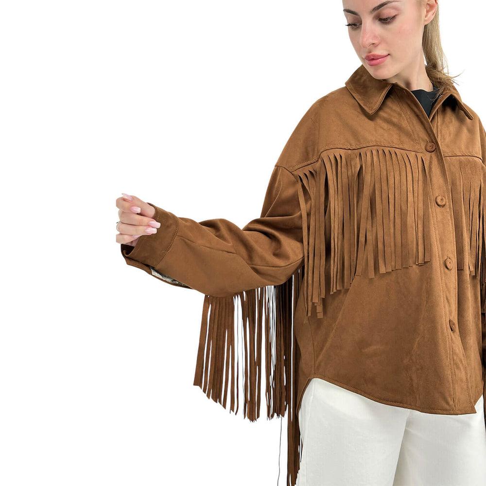 Tensione In Giacca Donna, Frange, Camoscio Ecologico, Marrone