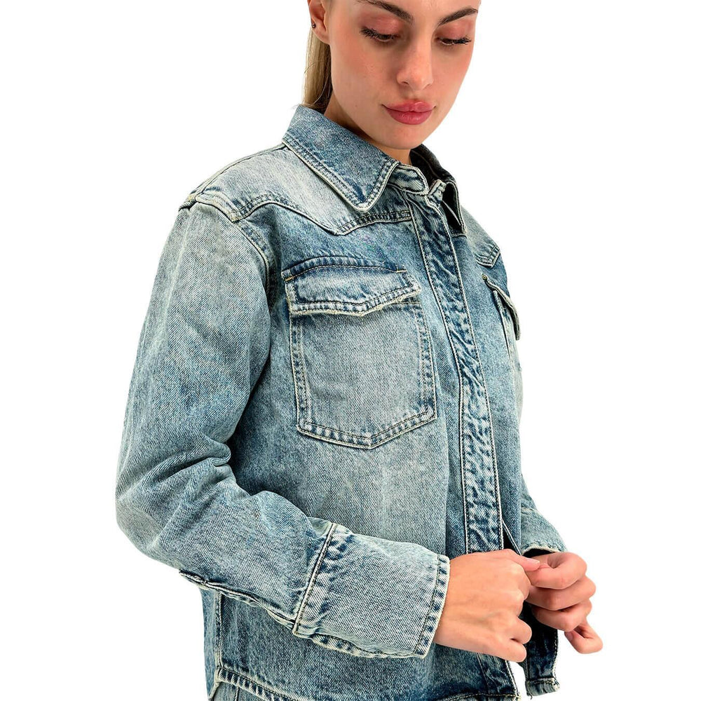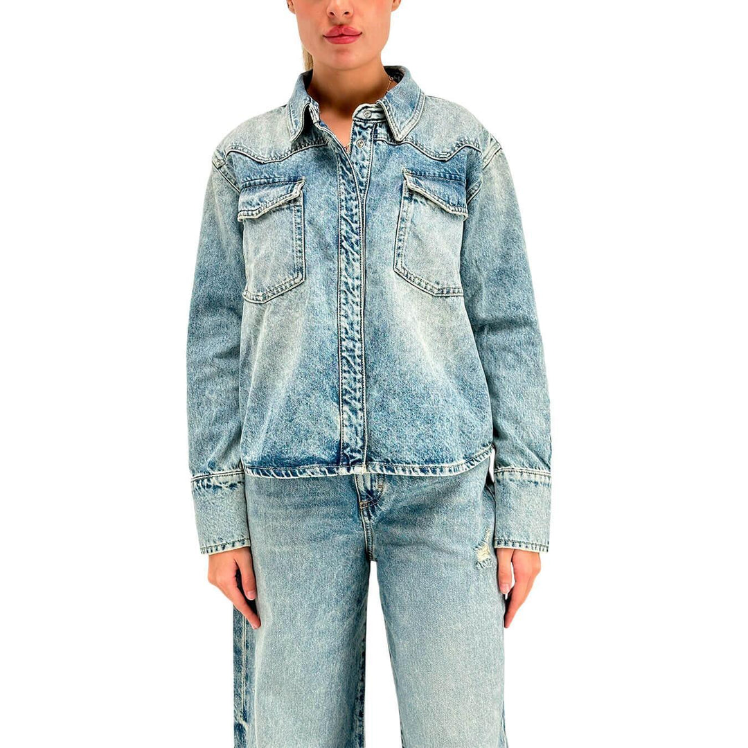Icon Denim Norah giacca donna, realizzata in cotone denim, modello camicia con vestibilità over. Caratterizzata da un classico collo, chiusura frontale con bottoni e pratiche tasche sul petto. La lunghezza media la rende perfetta per un look casual e versatile, ideale per abbinamenti con jeans o abiti per un tocco di stile rilassato. Colore blu chiaro. Composizione: 100% cotone.