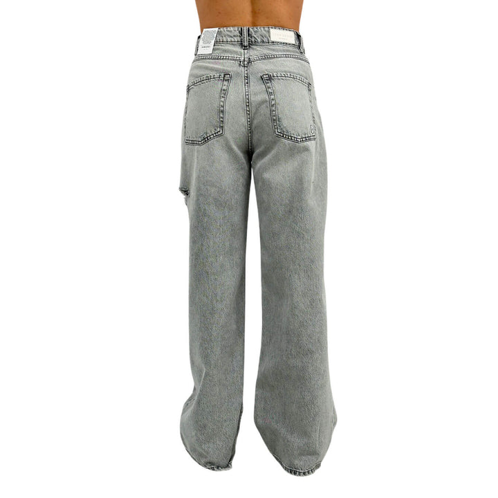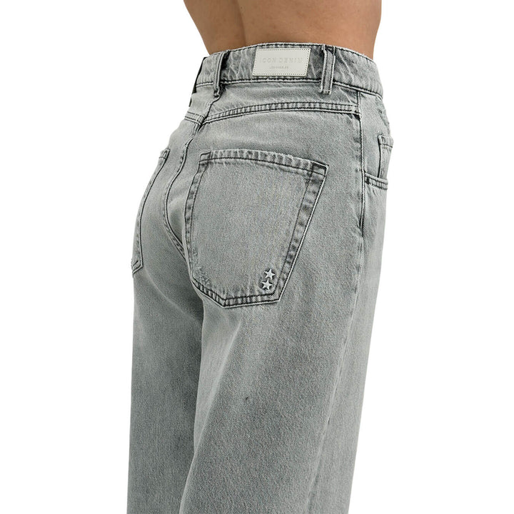 Icon Denim Poppy pantaloni donna, modello jeans a gamba larga, vita alta e strappi decorativi. Dotati di ben 5 tasche funzionali per tenere tutto a portata di mano, questi jeans offrono una vestibilità autentica e comoda. La chiusura con cerniera e bottone. Realizzati in denim resistente, sono ideali per un look casual e versatile. Composizione 100% cotone. Colore grigio. Vestibilità regolare.