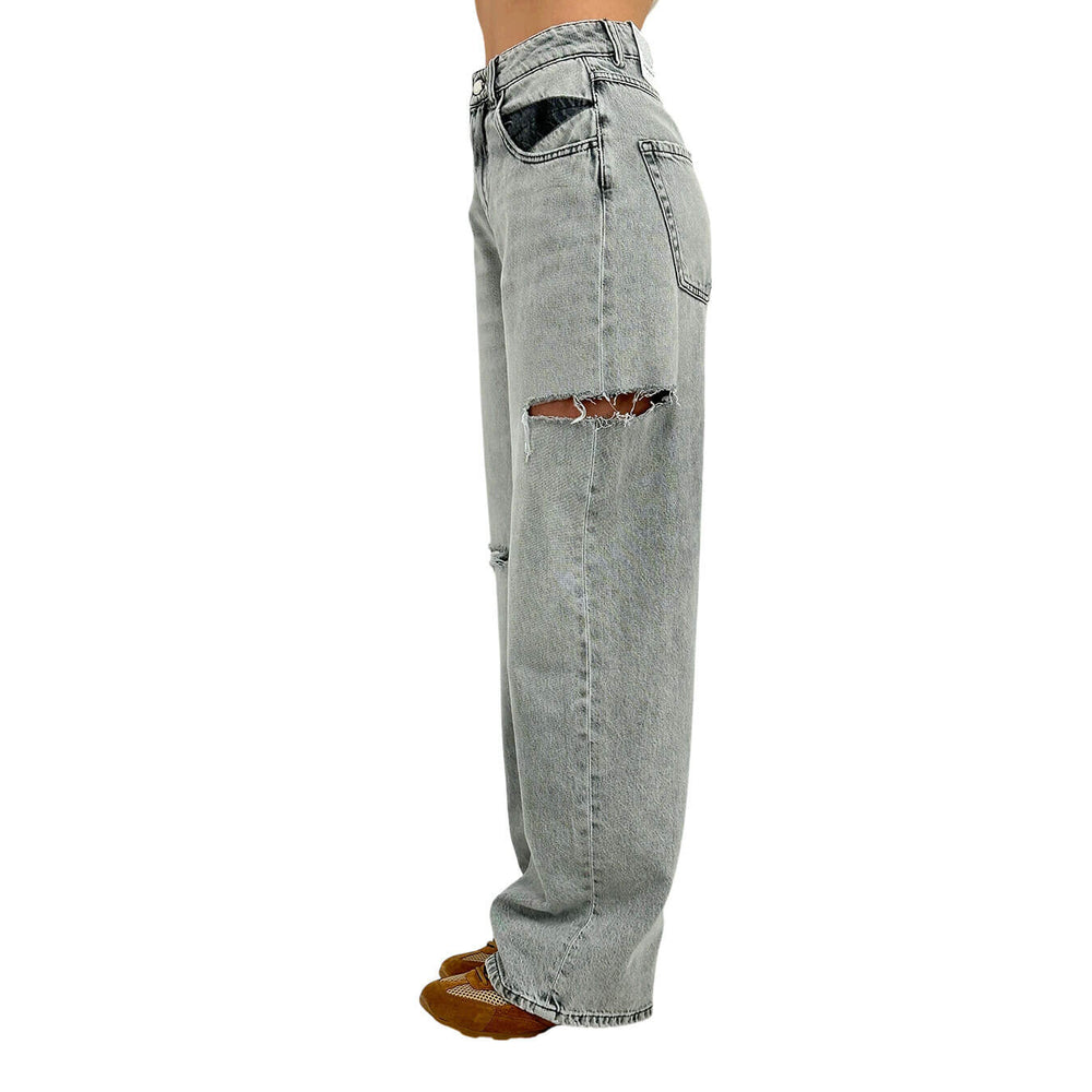 Icon Denim Poppy Pantaloni Donna, Jeans, Strappi, Cotone, Grigio